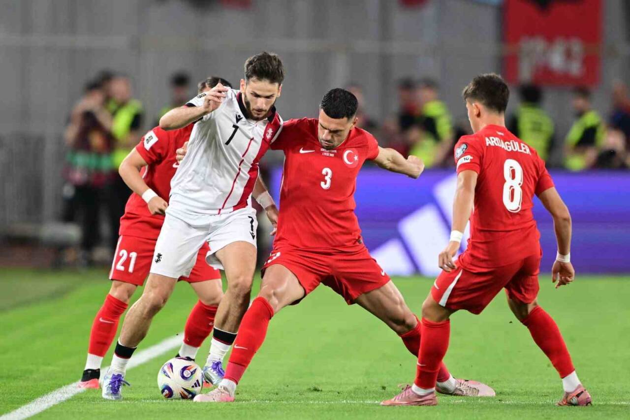 A Milli Futbol Takımı, 2026 FIFA Dünya Kupası Avrupa Elemeleri E Grubu’ndaki ilk maçında Gürcistan’ı 2-0 önde kapattı. Goller Mert Müldür ve Kerem Aktürkoğlu’ndan geldi. Mücadelede sarı kartlar Gürcistan’dan Lochoshvili, Kakabadze ve Türkiye’den İsmail Yüksek’e gösterildi.
