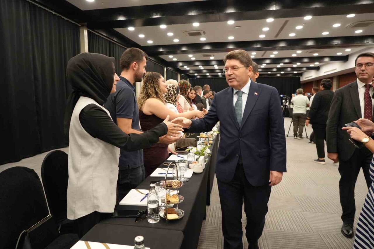 Kanunların yenilenmesine ve millileştirilmesine dikkat çeken Tunç, “AK Parti iktidarları döneminde özellikle mevzuatın geliştirilmesi ve ihtiyaca cevap veren bir mevzuata kavuşmamız anlamında çok büyük mesafeler aldık. Temel kanunlarımızın tamamı değişti. Burada genç meslektaşlarımız var. Onlar yeni kanunlarla işe başladılar ama burada özellikle tecrübeli arkadaşlarımız eski kanunlarla başlamışlardı mesleğe, sonrasında kanunlar yenilendi. O eski kanunlarımız bizim iktibastı. Yani dışarıdan almaydı, tercümeydi. İsviçre’den, Almanya’dan, Fransa’dan aldığımız kanunlarla biz 2000’li yıllara kadar geldik. 2000’li yıllarda hükümetlerimiz döneminde kendi akademisyenlerimizin katkısıyla, kendi hukukçularımızın hazırladığı ve meclisimizin onayladığı kanunlarla temel kanunlarımız yenilendi. Kanunlarımız millileşti. Ticaret kanunundan ceza kanunlarına, borçlar kanunundan usul kanunlarına kadar bütün temel kanunlarımız bu dönemde yenilendi. Ve bu yenileme süreci bitti mi? Bitmedi. Çünkü ihtiyaçlar gelişiyor, teknoloji gelişiyor, yeni suç tipleri, bilişim suçları ve nüfusun artması farklı sorunlara neden oluyor ve mevcut kanunlarda da yeni değişiklik ihtiyaçları mutlaka oluyor. Bu anlamda adliyeleri ziyaret ettiğimiz zaman hakim ve savcılarımıza şunu diyoruz; ‘Eğer kürsüde bir kanunu uygularken o kanunun vicdanınıza ters geldiğini anlıyorsanız, düşünüyorsanız ve uygularken keşke şöyle düzenli etseydik diyorsanız, anayasaya aykırılık iddiasında bile bulunmanıza ihtiyaç yok. Bize bildirin. Adalet Bakanlığı Mevzuat Genel Müdürlüğü zaten bunun için kurulmuş. Bunun çalışmasını yaparız. Milletvekillerimize talepte bulunuruz. Deriz ki bu kanun şu şekilde düzeltilmesi lazım.’ Yani Anayasa Mahkemesi süreçlerini bile beklemeden biz bunları daha hukuka uygun hale getirdik” dedi.