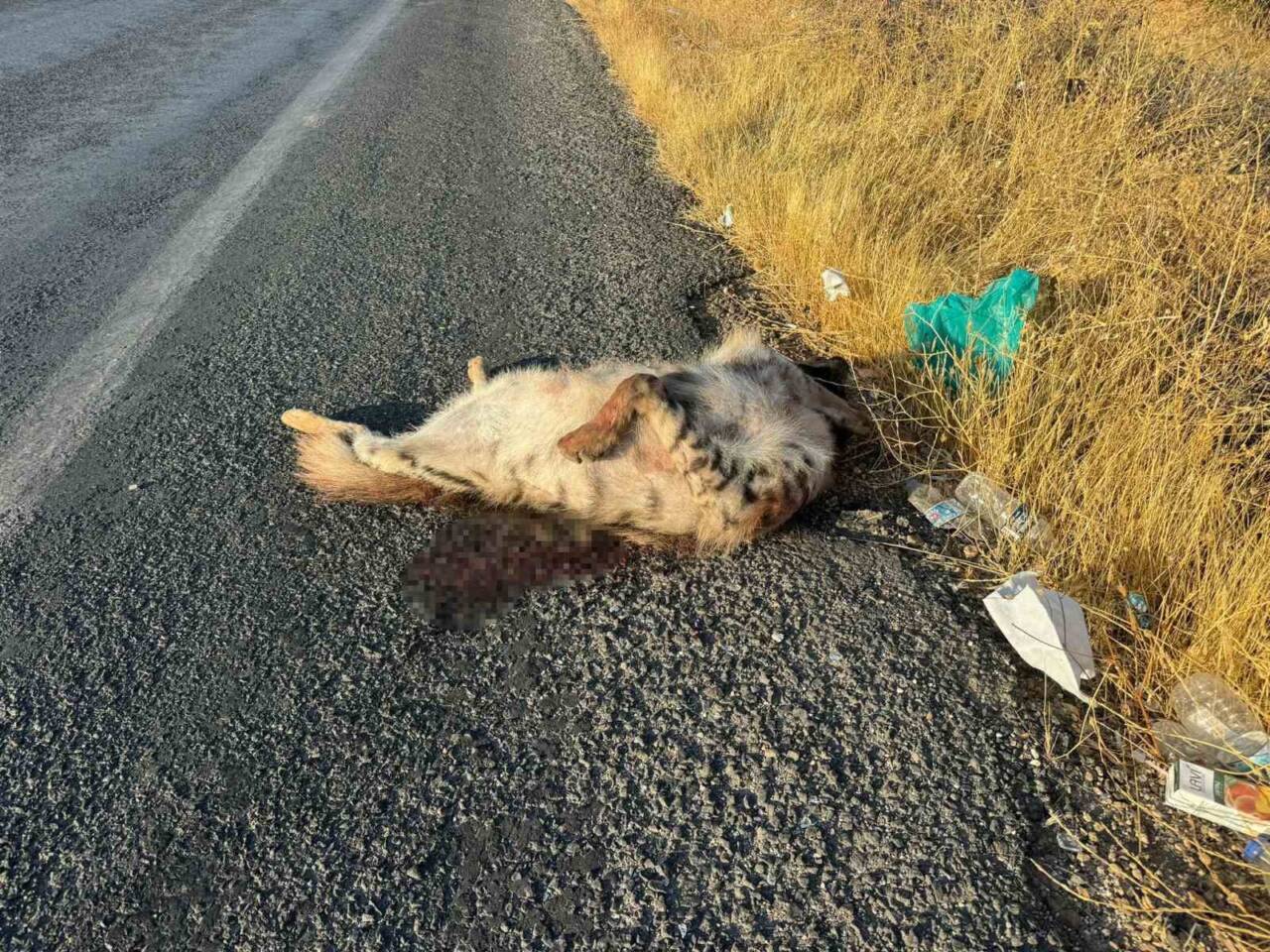 Şanlıurfa’nın Halfeti ilçesinde aracın çarptığı çizgili Anadolu sırtlanı telef oldu.