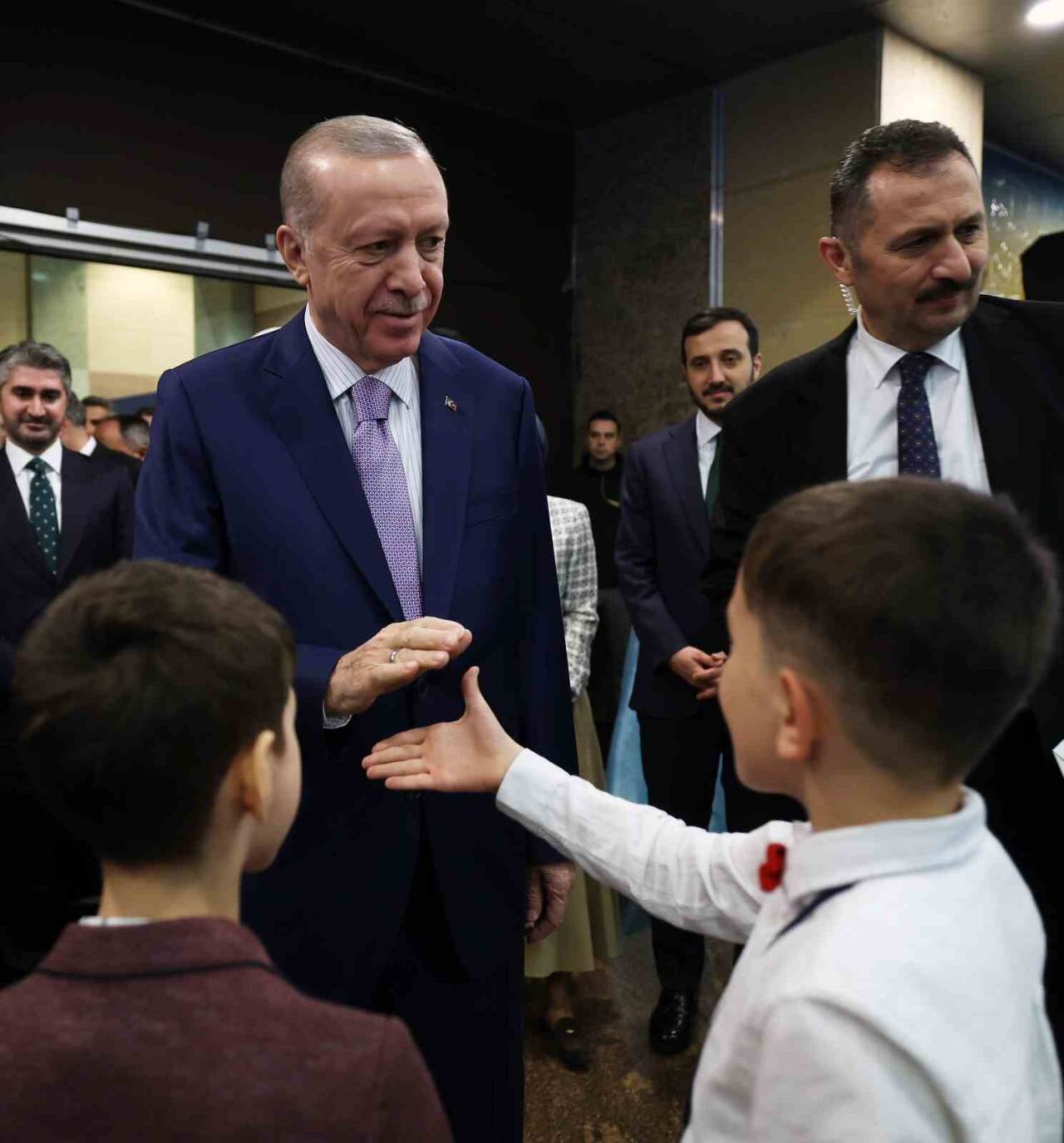 Cumhurbaşkanı Erdoğan konuşmasının devamında, “Sevgili yavrularım, hayat ince ve uzun bir yoldur. Bu yolculukta zorluklar ve kolaylıklar, sevinçler ve hüzünler olabilir bunlar gayet doğaldır. Ancak insanın en büyük gücü, inancı, imanı ve mücadele kararlılığıdır. İnancın ve azmin önünde hiçbir engel duramaz. Hiçbir olumsuzluğun aşkınızı kırmasına, hayallerinizle aranıza girmesine izin vermemenizi sizden bekliyorum. İstikbali şekillendirecek olanlar hiç şüphesiz sizlersiniz. Sizler bizim ve milletimizin geleceğisiniz. Sizler bizim en kıymetli varlığımızsınız. Hiç endişeniz korkunuz olmasın, inşallah yarınlarımız daha güzel olacak. Türkiye Yüzyılı inşallah siz çocuklarımızın da yüzyılı olacak. Türkiye Cumhurbaşkanı olarak ben sizlere tüm kalbimle inanıyorum. Sizin kardan aydınlık tertemiz yüreklerinize, içinizdeki cevhere sonuna kadar güveniyorum” ifadelerini kullandı.