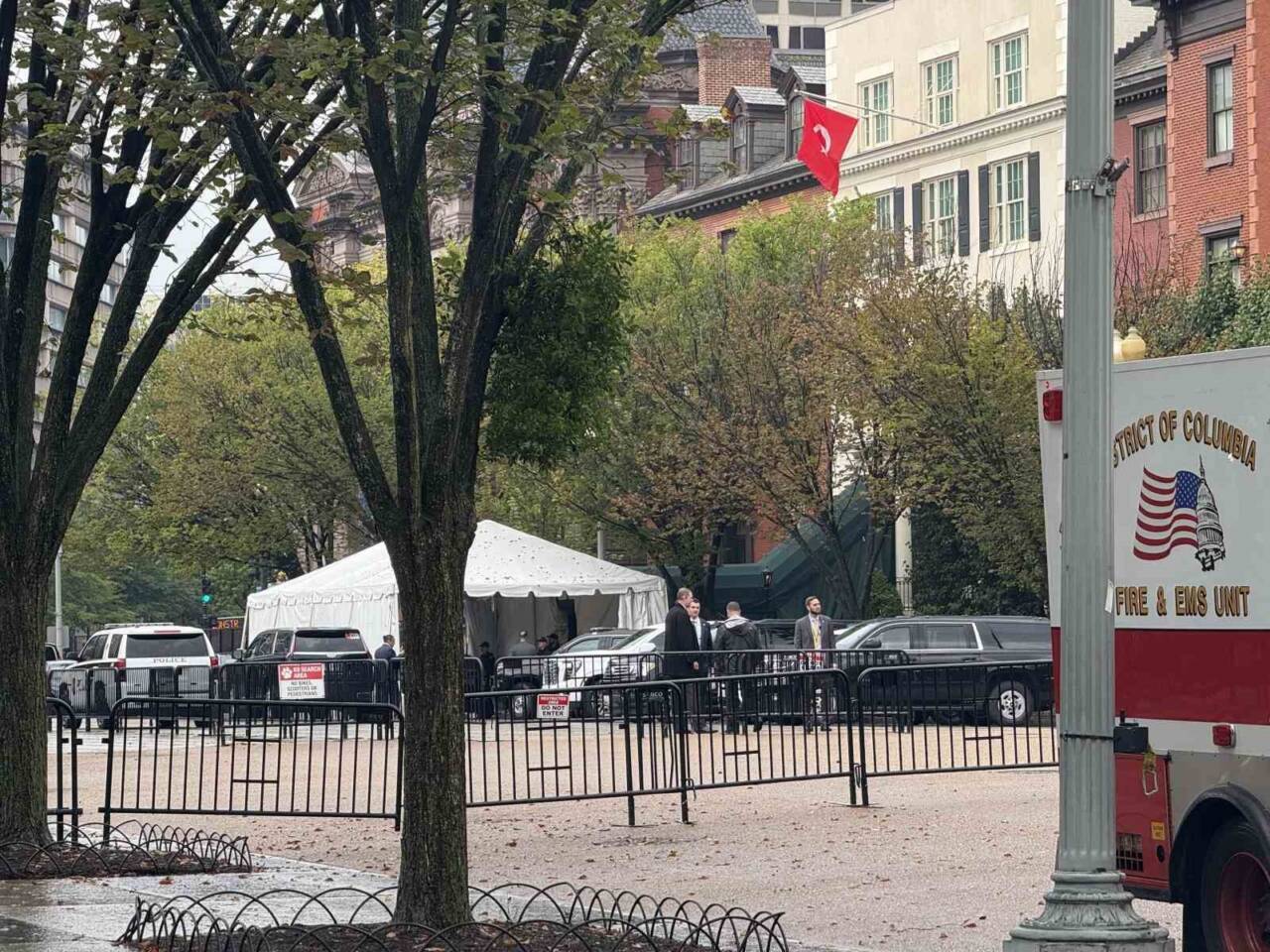 Cumhurbaşkanı Recep Tayyip Erdoğan, Birlemiş Milletler 80. Genel Kurulu’na katılmak üzere geldiği New York’taki temaslarını dün tamamlayarak akşam saatlerinde Washington’a gelmişti. ABD Başkanı Donald Trump ile bugün görüşecek olan Erdoğan, Beyaz Saray’ın karşısında bulunan ve devlet başkanlarının konakladığı Blair House’ta kaldı. Cumhurbaşkanı Erdoğan ve eşi Emine Erdoğan’ın konakladığı Blair House’a, Cumhurbaşkanı Erdoğan’ın gelişiyle Türk bayrağı çekildi.
