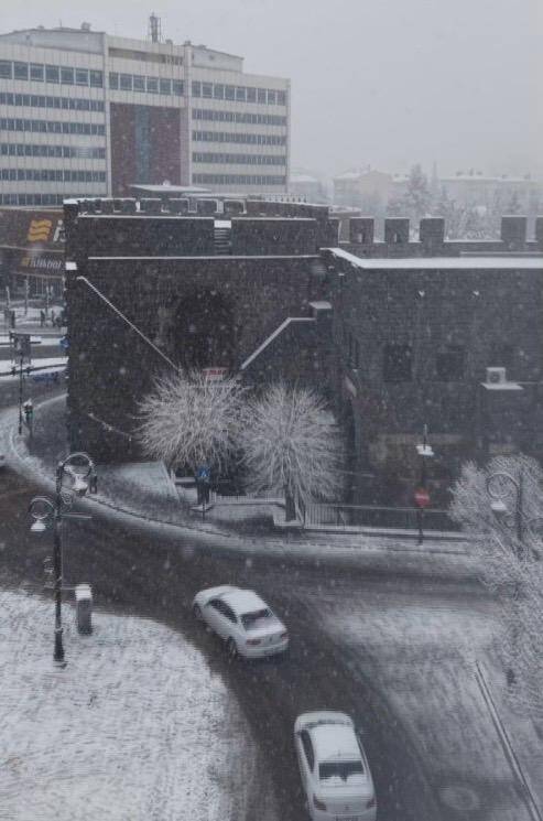 Diyarbakır’da etkili olan kar yağışıyla birlikte kentin tarihi ve kültürel mirası kartpostallık görüntüler oluşturdu.
