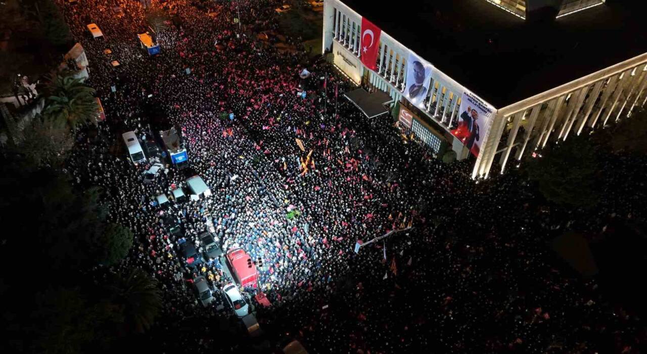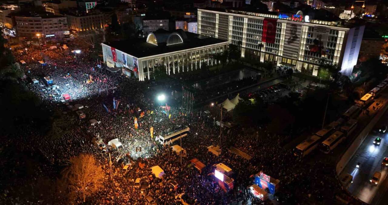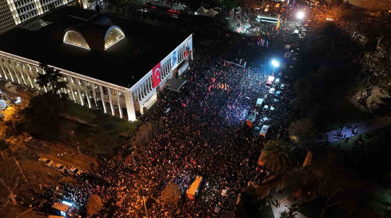 İstanbul Büyükşehir Belediye Başkanı Ekrem İmamoğlu’nun, İstanbul Cumhuriyet Başsavcılığı’nın yürüttüğü iki ayrı soruşturma kapsamında gözaltına alınmasının ardından CHP Genel Başkanı Özgür Özel, İstanbul’a gelerek İBB binası önünde basın açıklaması gerçekleştirdi. İBB binası çevresindeki kalabalık ise dronla havadan görüntülendi.