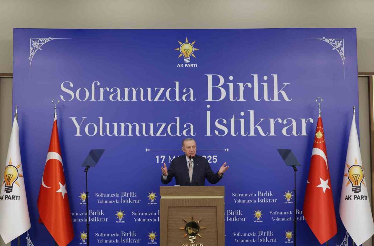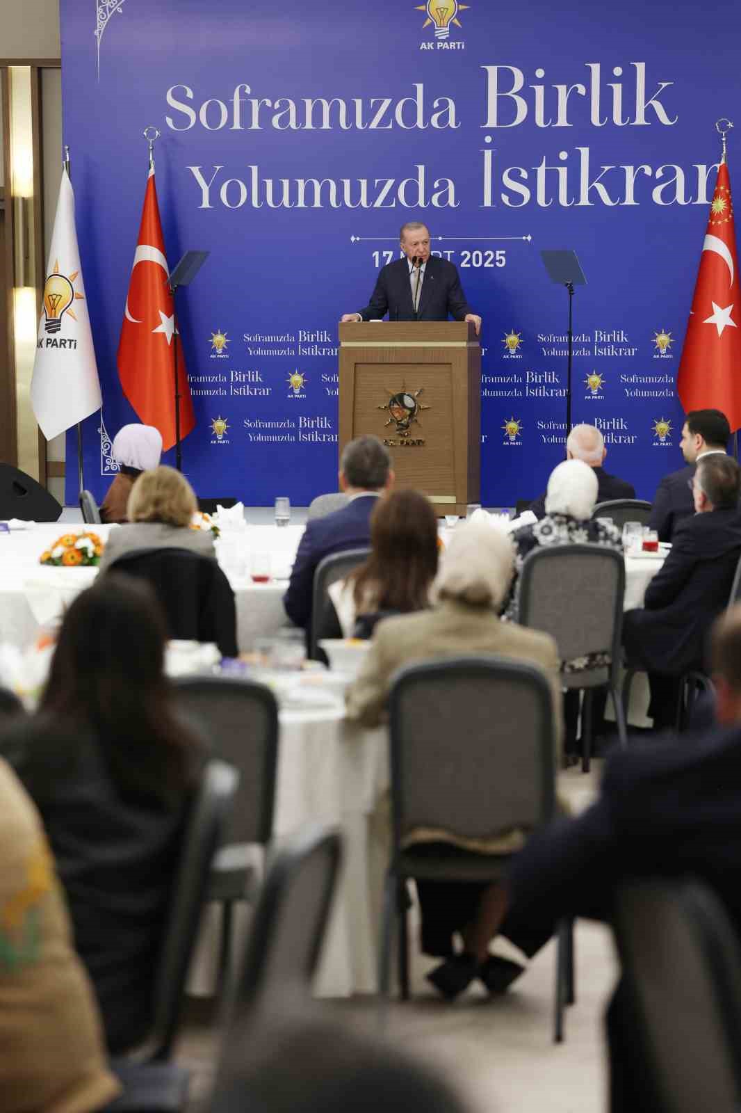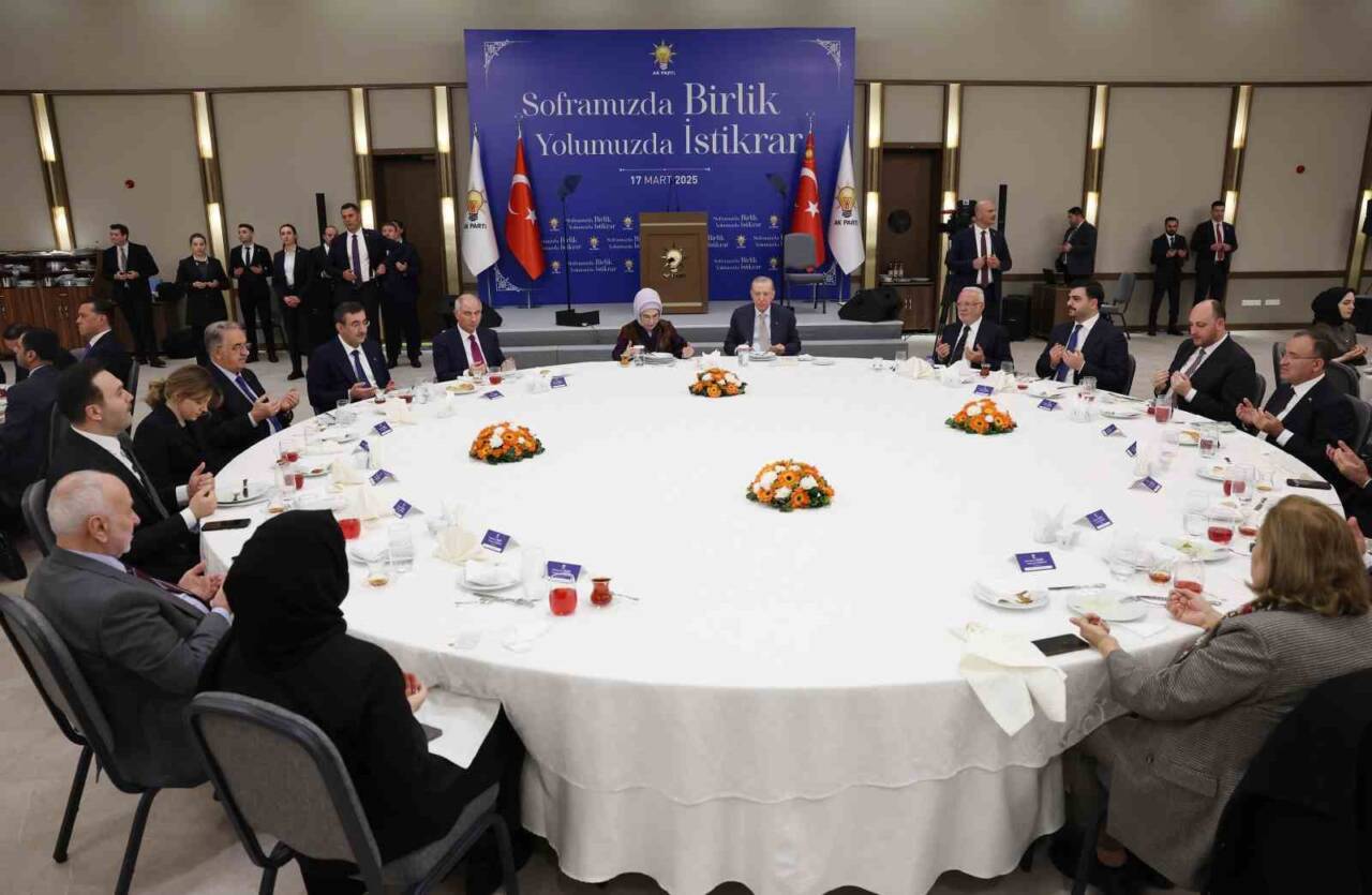 Erdoğan, AK Parti Kongre Merkezi’nde iftar programında parti üyeleriyle bir araya geldi. Burada bir konuşma yapan Cumhurbaşkanı, “Böyle geniş bir mekânda birlikte iftar yapma fırsatını Allah bize nasip etti. Soframızı şereflendirdiğiniz için her birinize teşekkür ediyorum. Bu yıl Ramazan’ınızı en verimli şekilde geçirmeniz ve yaklaşan Kadir Gecesi ile bayramınızı şimdiden kutlamak istiyorum” dedi.
