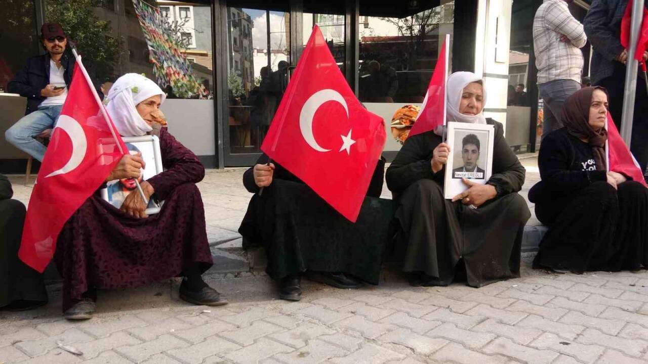 Terör örgütü PKK tarafından çocukları dağa kaçırılan ailelerin Van’da başlattığı evlat nöbeti 109’uncu haftasına girdi. Çocukları farklı tarihlerde terör örgütü PKK tarafından kaçırılan 35 aile, ellerinde Türk bayraklarıyla DEM Parti Van İl Başkanlığı binasına yürüyerek burada basın açıklamasında bulundu.