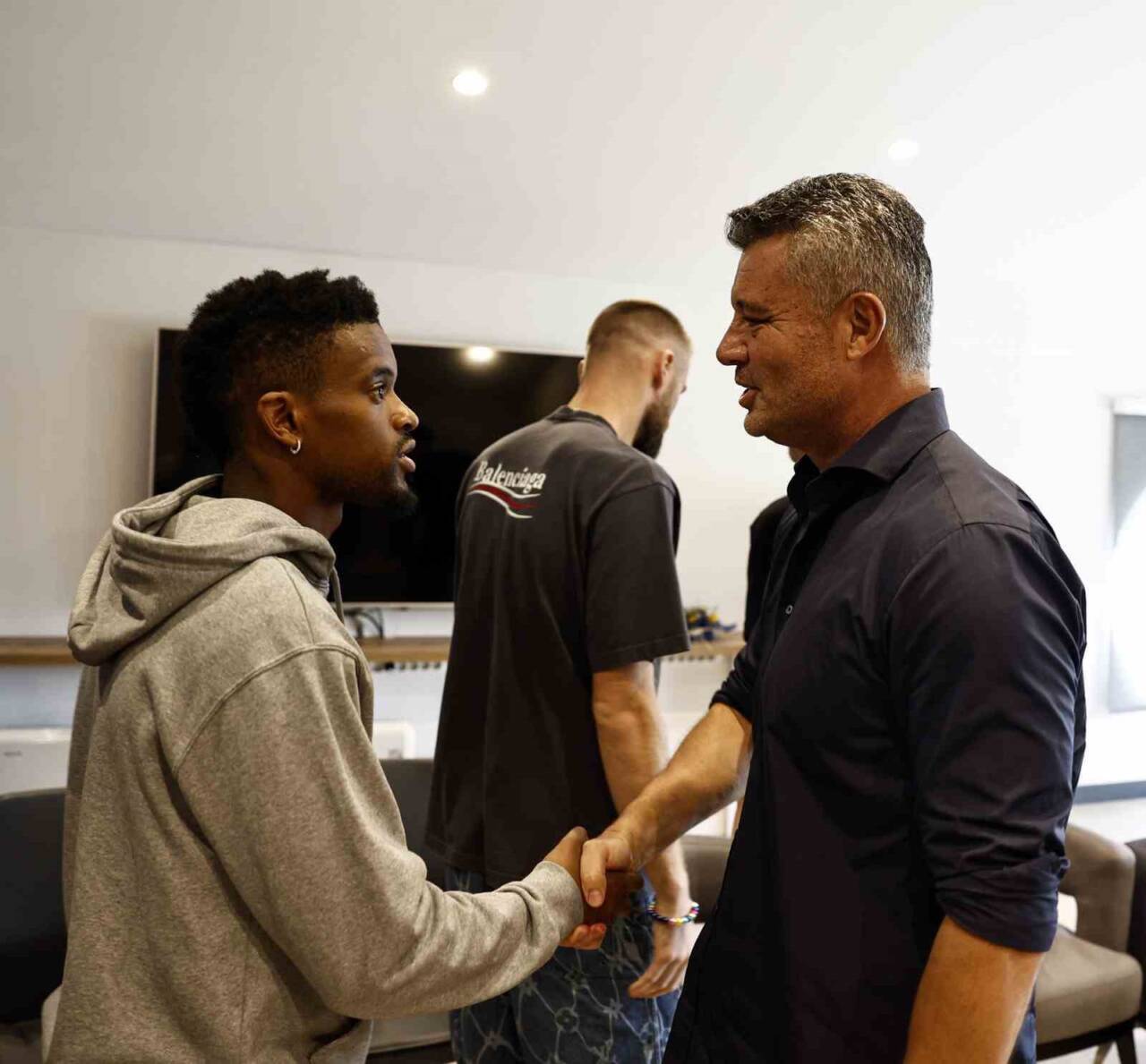 Saran ve Torunoğulları, burada futbolcularla bir araya gelerek toplantı gerçekleştirdi.