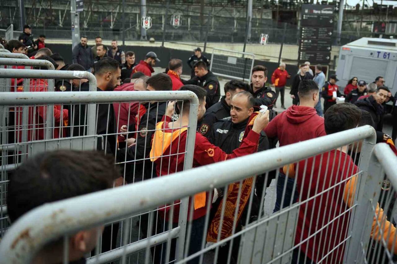 Trendyol Süper Lig’in 29. haftasında Galatasaray, bugün saat 20.30’da deplasmanda Beşiktaş ile mücadele edecek. Sarı-kırmızılı taraftarlar, bu kritik maçta takımlarını desteklemek için stadyumu doldurdu. Taksim Gezi Parkı yakınındaki Mete Caddesi’nde saat 16.30’da bir araya gelen taraftarlar, coşkulu tezahüratlar eşliğinde stadyuma doğru yürüyüşe geçti. Galatasaraylı taraftarlar, üst aramalarının ardından gruplar halinde stadyuma giriş yaptı.