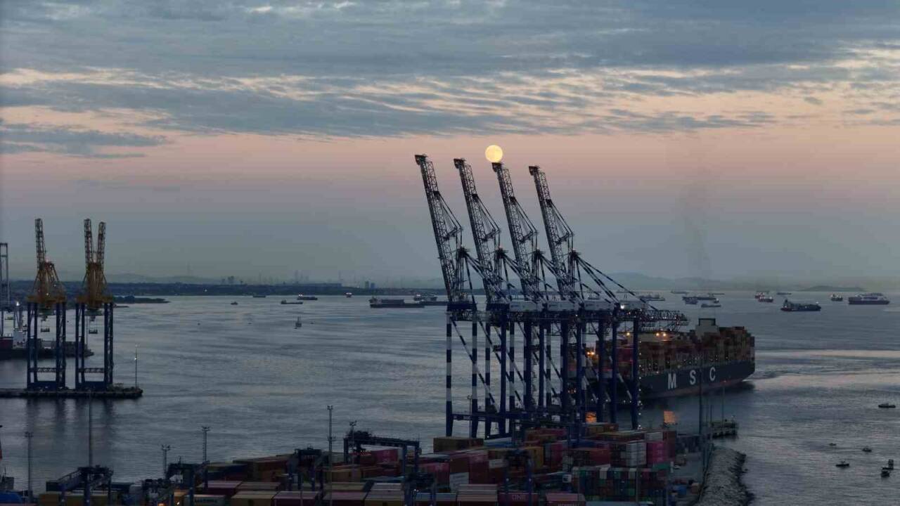Türkiye’nin konteyner hacmi bakımından en büyük, kargo tonajında beşinci büyük limanı olan Ambarlı limanında Dolunay görüntülendi. Gün batımıyla beraber ortaya çıkan dolunay havadan görüntülendi. 300 metrelik dev gemilerin yanaşabildiği limanda konteyner vinçleri arasında görüntülenen dolunay manzarası izleyenleri kendine hayran bıraktı. Bir tekne dolunaya doğru yol aldığı anlar havadan çekilen görüntülere yansıdı. Limana yanaşan bir gemi ise zaman atlatmalı çekim tekniği ile çekildi.