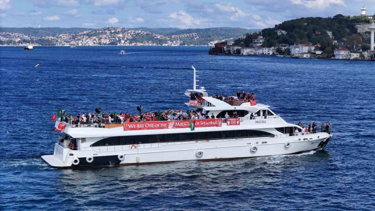 İngiliz ekibinin boğaz turu yaptığı tekne üzerinde “We are one of the miracles of İstanbul” yazılı pankart olduğu görüldü. Öte yandan İngiliz taraftarlarını taşıyan teknede Filistin bayrağının olması da dikkat çekti.