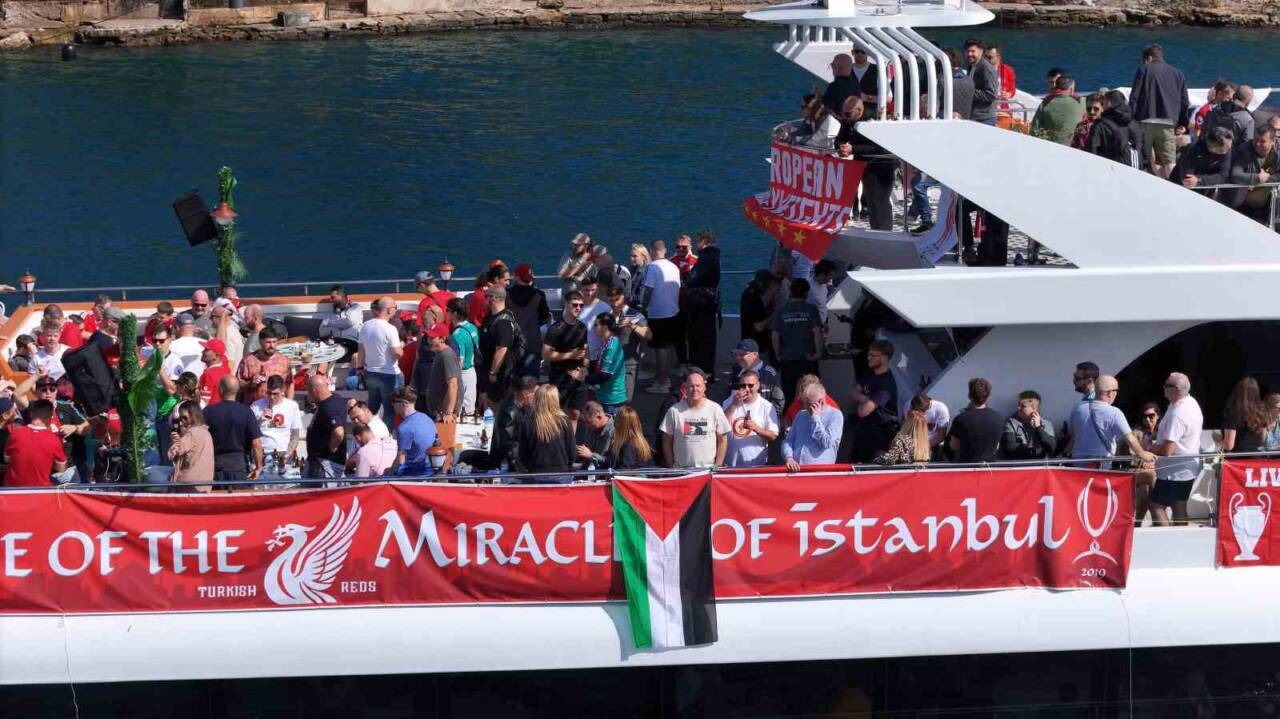 UEFA Şampiyonlar Ligi 2. haftasında Galatasaray ile Liverpool, bu akşam saat 22.00’de Rams Park’ta karşı karşıya gelecek. Maç için İstanbul’a gelen Liverpool taraftarları bugün İstanbul Boğazında tekne turu yaptı. Yüzden fazla taraftar grubunun olduğu tekne, tarihi yarımadadan geçerek boğaz hattında gezdi. Yaklaşık 100 kişilik taraftar grubunun olduğu tekne havadan görüntülendi.