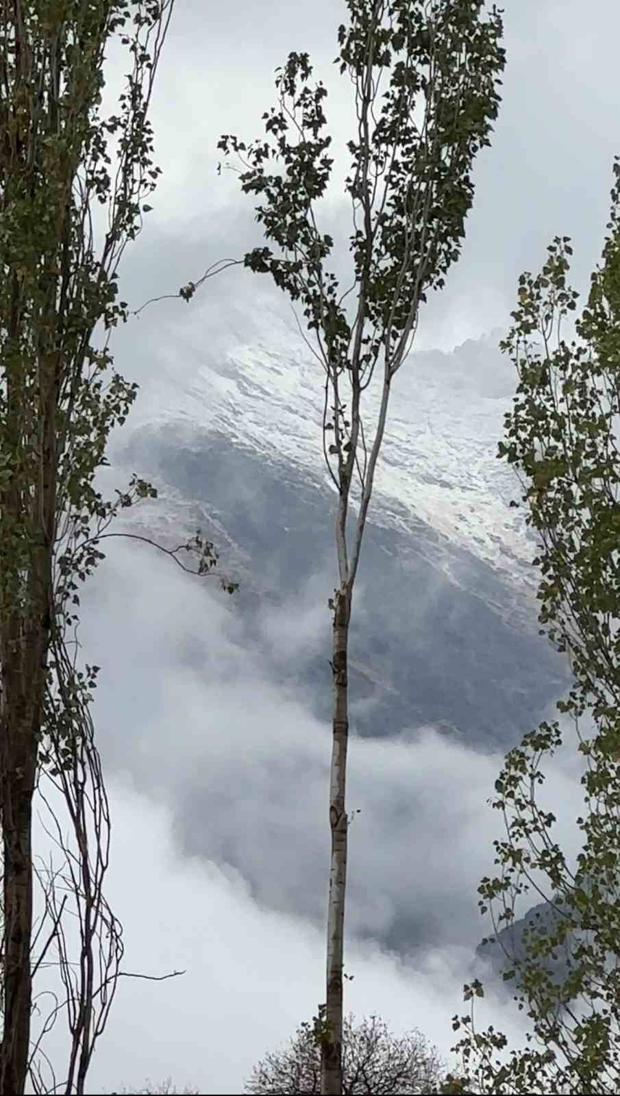 El değmemiş köyde, bazı noktalarda dağlardaki kar ile alçalan bulutların birleşimi, kartpostallık görüntüler oluşturdu. Köyde bir yanda kar, diğer yanda sarı ve yeşil yaprakların hâkim olduğu sonbahar manzarası ve hemen eteğinde otlayan atların görüntüsü, eşsiz kareler ortaya çıkardı. O anları görenler bu güzellikleri kaydetmek için deklanşöre bastı.