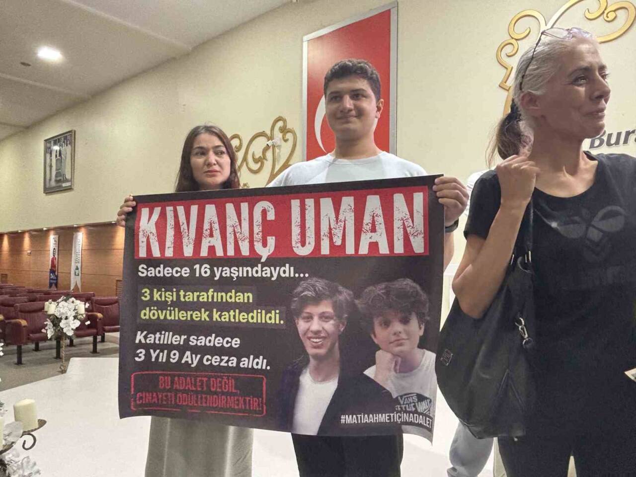 Mattia Ahmet Minguzzi’nin annesi Yasemin Minguzzi, Kocaeli’nin İzmit ilçesinde Yunus Emre Kültür Merkezinde evlatları kaybeden aileler buluştu. Kocaeli’nin İzmit ilçesinde 15 Mayıs 2022 yılında kız meselesi yüzünden hayatını kaybeden Kıvanç Umman’nın annesi Derya Umman ve Babası Orhan Umman ile bir araya geldi. Derya Umman, “Katillerin aileleri gülmesin” ifadelerini kullandı.