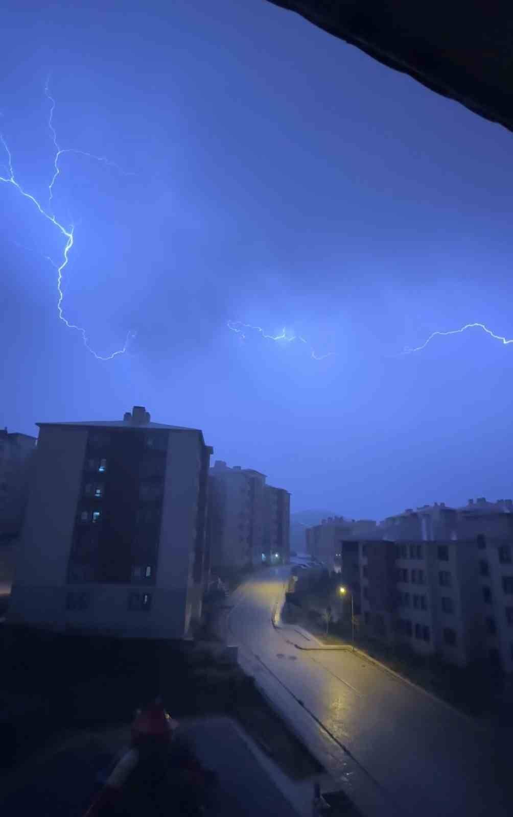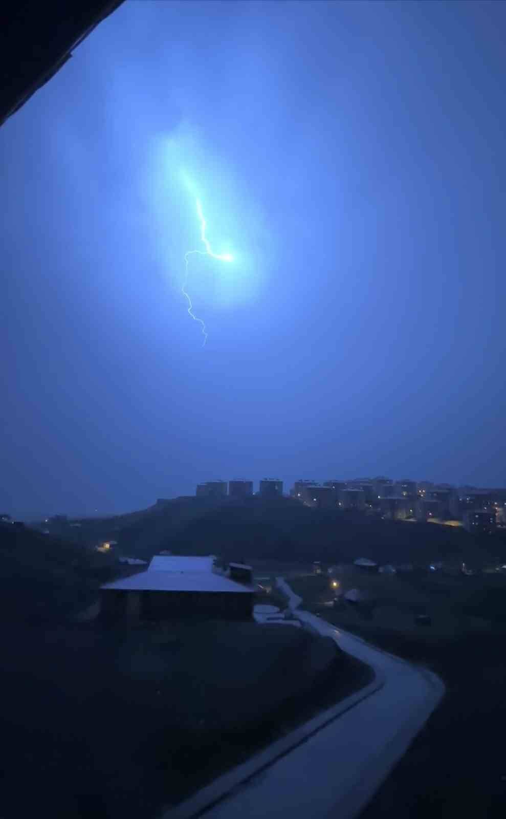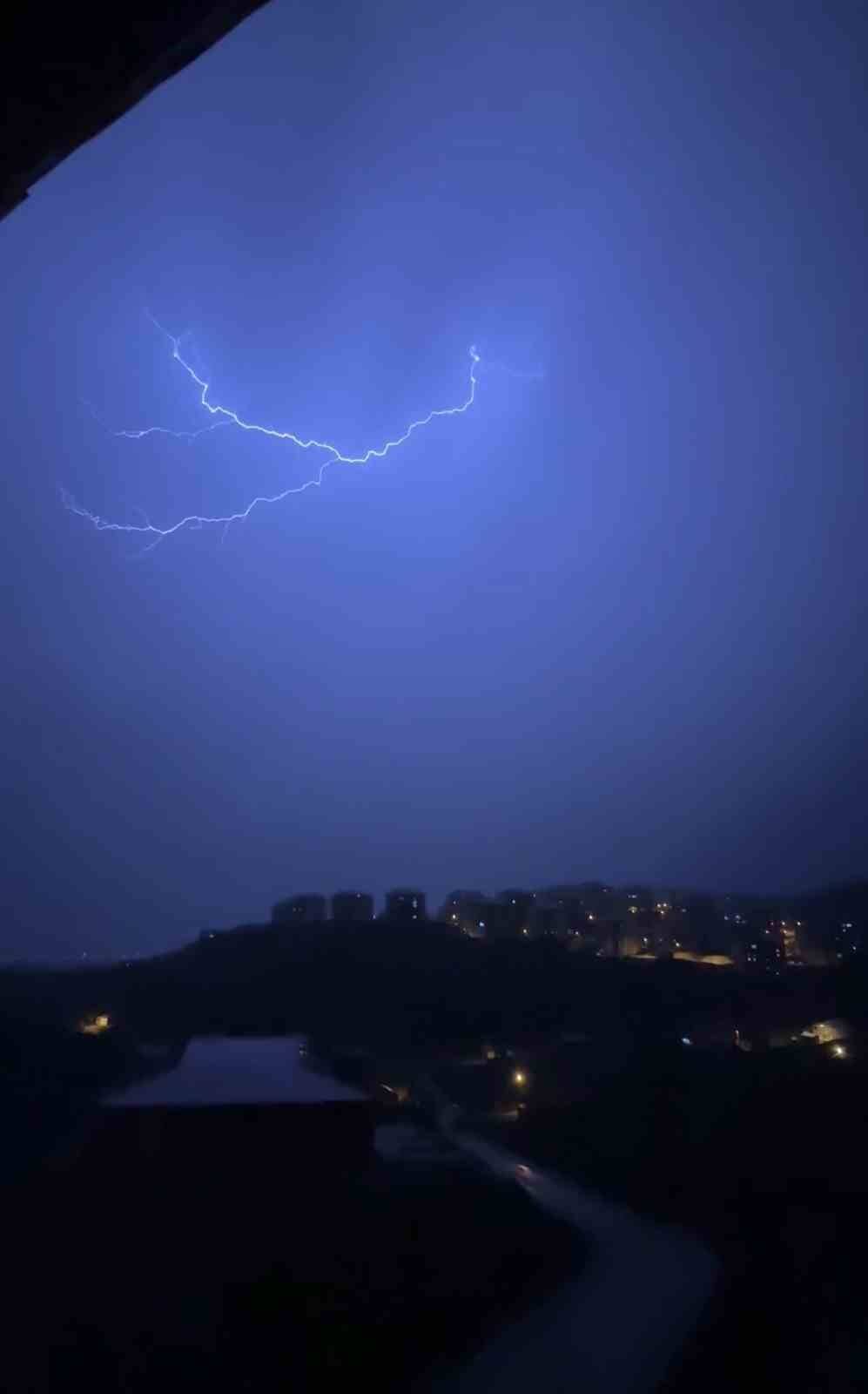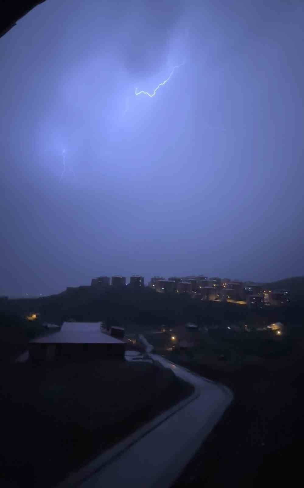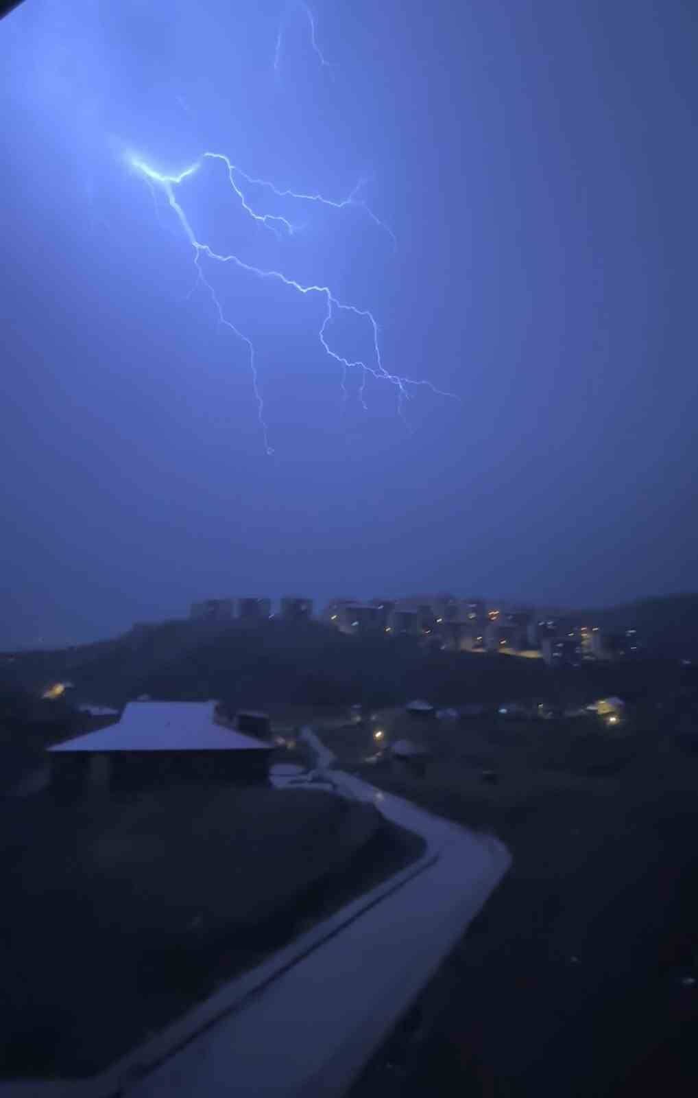 Bu sırada, Yüksekova’nın dört bir yanında çakan şimşekler, görüntülendi ve herkese eşsiz bir manzara sundu.
