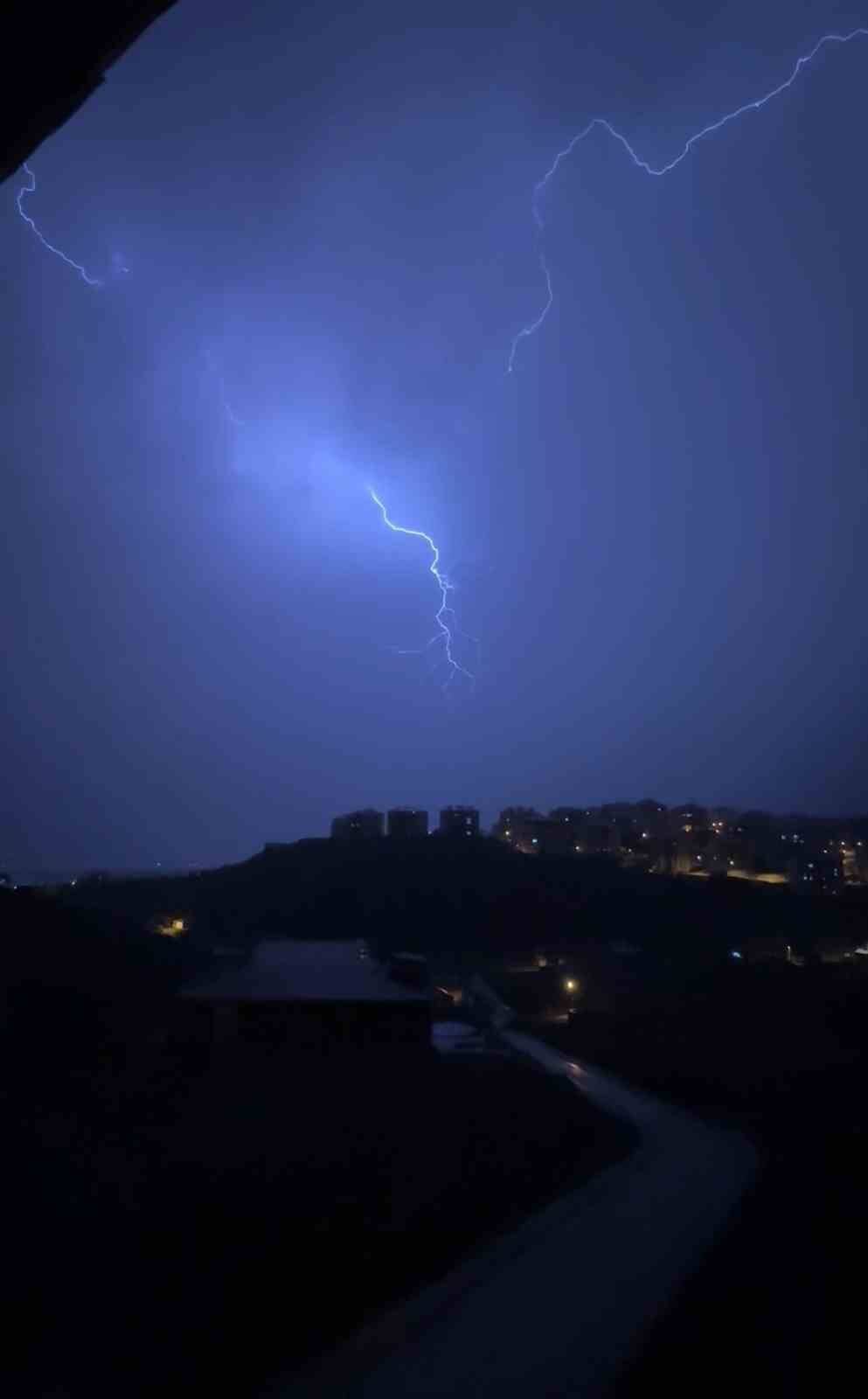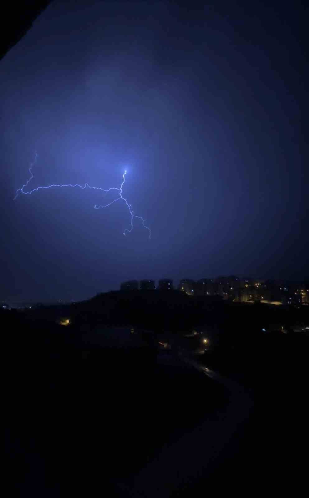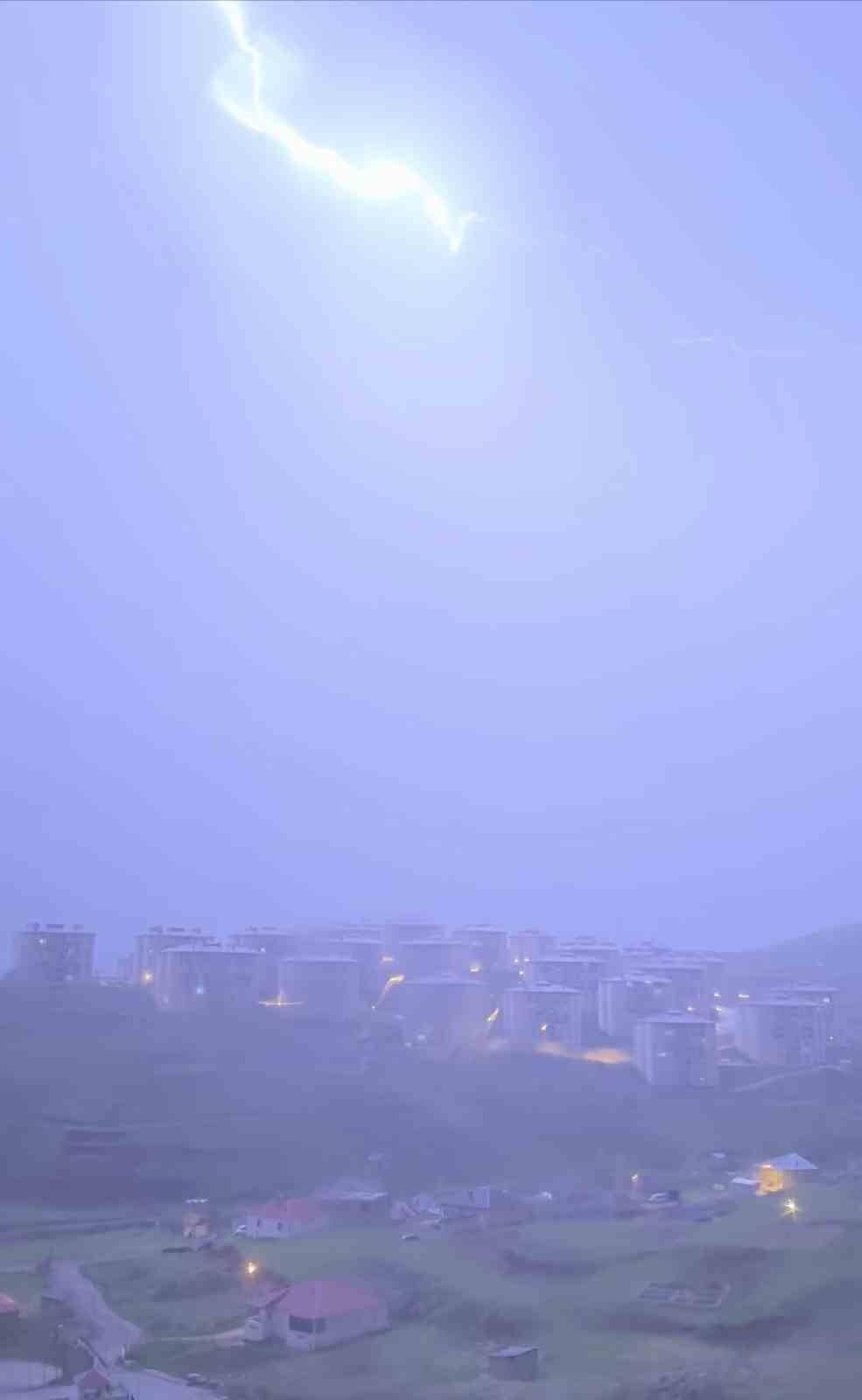 Yüksekova ilçesinde meydana gelen şiddetli fırtına ve sağanak yağış, bölgeyi etkisi altına alırken, çakan şimşekler adeta bir görsel şölen halini aldı.