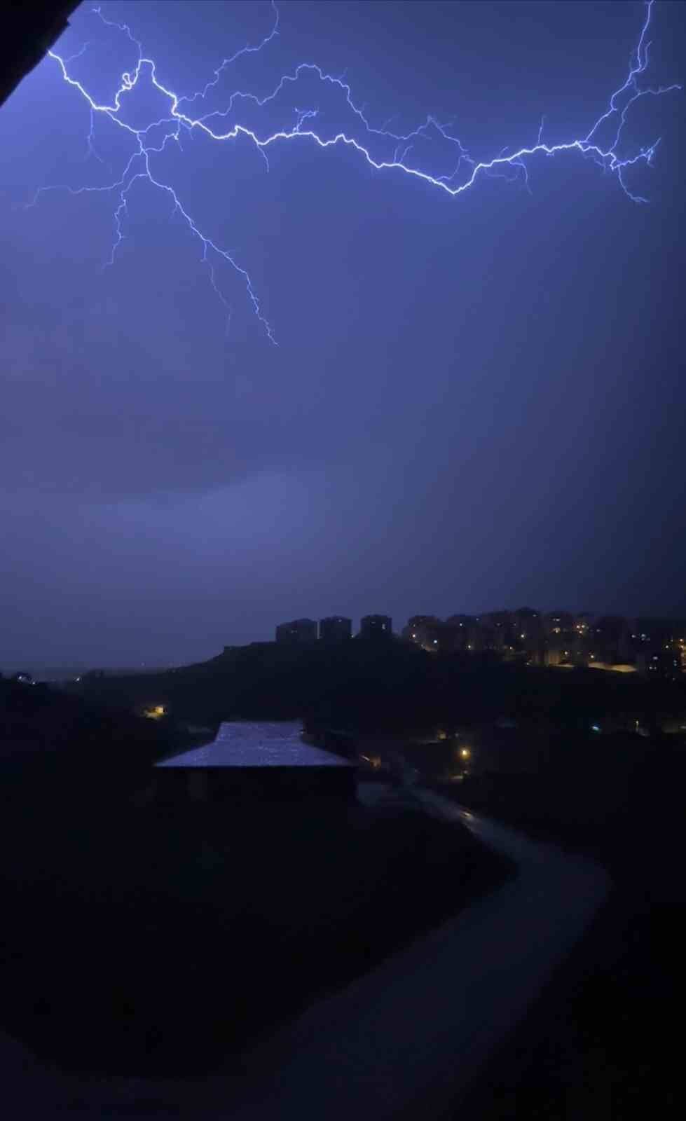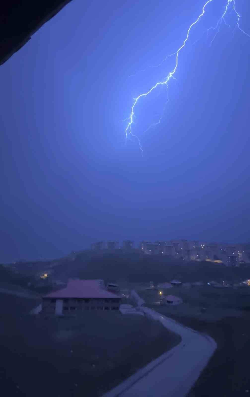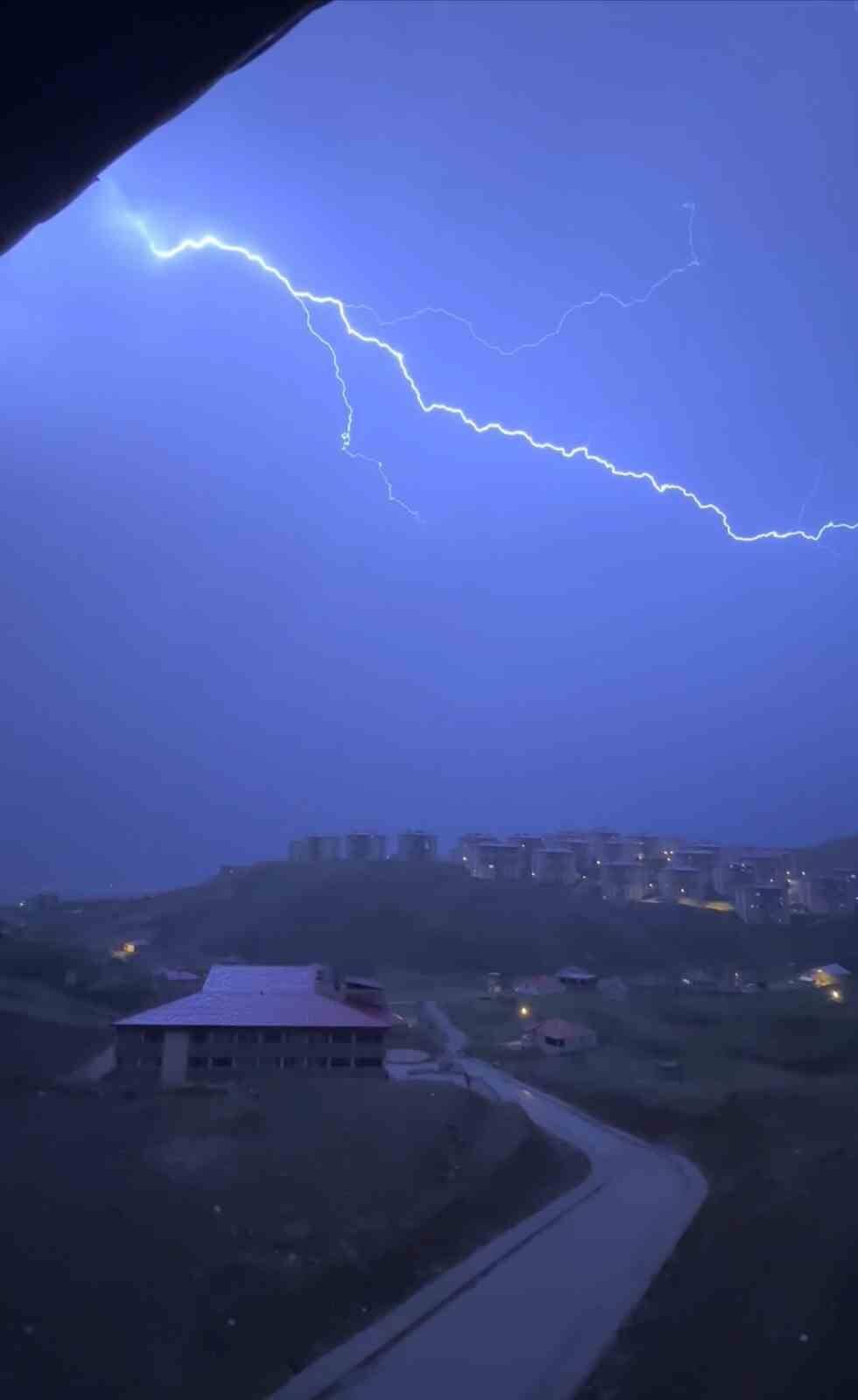 Yüksekova ilçesinde meydana gelen şiddetli fırtına ve sağanak yağış, bölgeyi etkisi altına alırken, çakan şimşekler adeta bir görsel şölen halini aldı.
