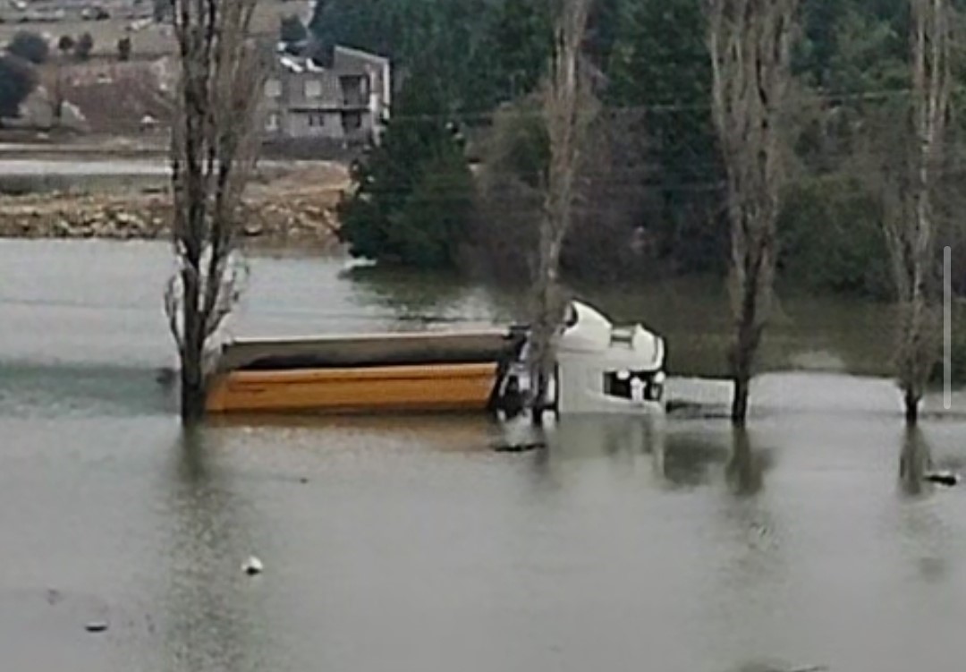 Adana’nın Karaisalı ilçesine bağlı Etekli köyünde etkili olan yağışların ardından doluluk oranı yüzde 100’e ulaşan Çatalan Baraj Gölü’nün kapaklarının açılmasıyla köyü su bastı, bir kamyon suya gömüldü.