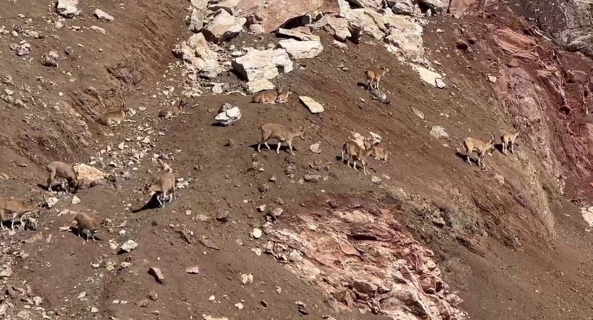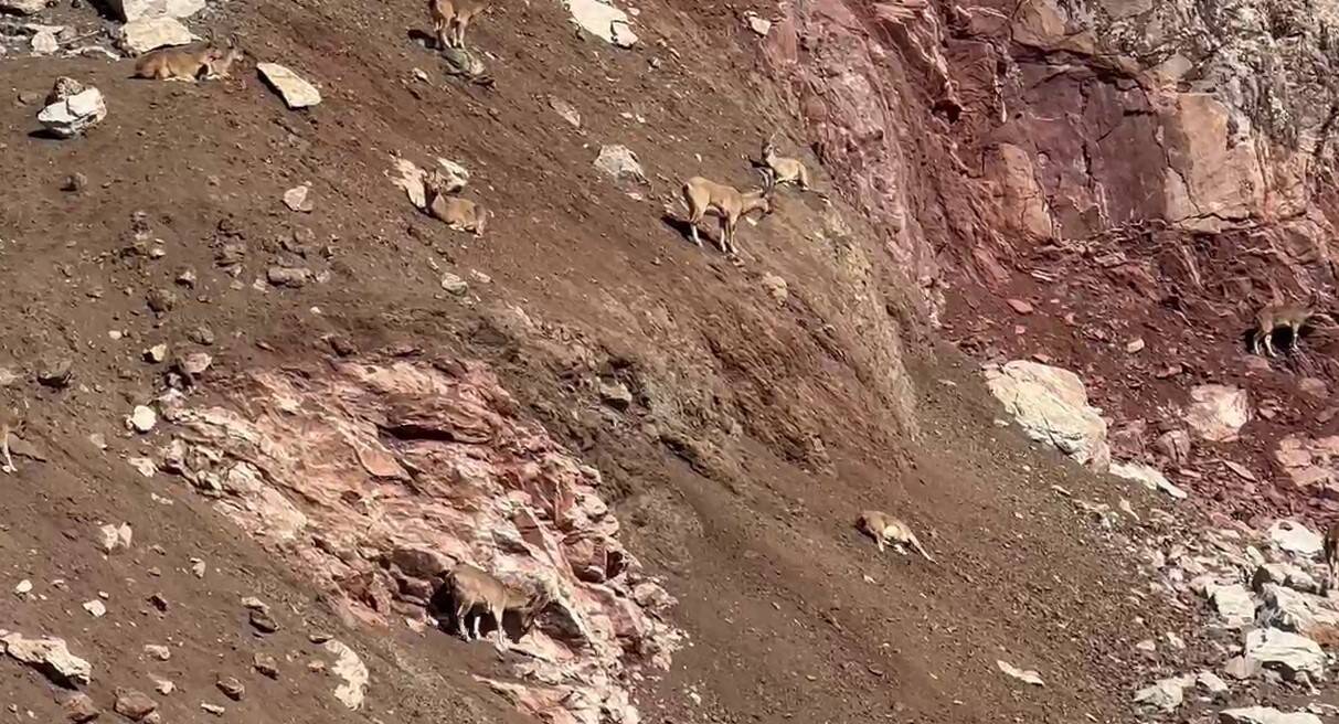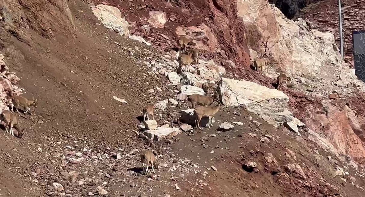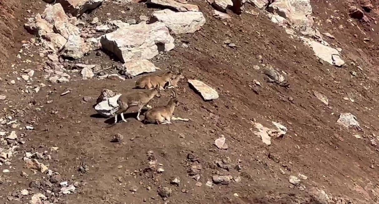 Adıyaman'da hava sıcaklıklarının artmasıyla birlikte kırsal alanda yaşayan dağ keçileri, güneşli günlerin keyfini sürmeye başladı.