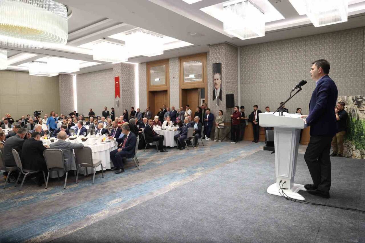 "Bu topraklarda kaos mühendisliğine soyunanların kirli planlarını bundan önce olduğu gibi tarihin çöplüğüne hep beraber atacağız" diyen Bakan Kurum, "Bugün dünyada sadece insani krizler yaşanmıyor. Ortadoğu ateş çemberiyken, bölgesel ve küresel çatışmalar hız kesmeden büyüyor. Enerji yollarından ticaret koridorlarına kadar hemen hemen her alanda bir mücadele yaşanıyor ve yeni bir dünya düzeni kuruluyor. Hiç şüphesiz böylesine kaotik bir ortamda büyük ve güçlü Türkiye’nin teminatı hepimizin birlik ve beraberliğidir. Tabi müzmin Türkiye düşmanları, dışarıdaki bunca kaosa rağmen Türk milletinin birlik ve beraberliğinden rahatsız ve tedirginler. Olmaya da devam etsinler. Hamdolsun milletimiz bu konuda da AK Parti’mize, Cumhur İttifakımıza ve Recep Tayyip Erdoğan’a güveniyor. Büyük ve güçlü Türkiye yoluna takoz koymak isteyenlerin emellerini milletimiz boşa çıkarıyor. Şundan şüpheniz olmasın Türkiye düşmanlarını bir kez daha hep birlikte hüsrana uğratacağız. Heveslerini bir kez daha kursaklarında bırakacağız. Bu topraklarda kaos mühendisliğine soyunanların kirli planlarını bundan önce olduğu gibi tarihin çöplüğüne hep beraber atacağız. Merkezinde kardeşliğin, huzurun, refahın, kalkınmanın olduğu günlerin kapılarını sonuna kadar açmak suretiyle kovalayacağız. İşte bu güzel gelecek için bir olacağız. Türk’üyle, Kürt’üyle, Arap’ıyla, Laz’ıyla, Çerkez’iyle hep birlikte Türkiye olacağız. Sayın Cumhurbaşkanımızın liderliğinde, kardeşçe bugüne kadar olduğu gibi omuz omuza vererek Türkiye Yüzyılı’nı hep birlikte inşa edeceğiz" ifadelerini kullandı.