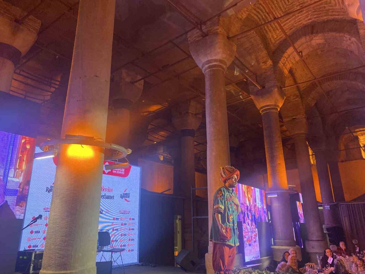 Kültür ve Turizm Bakanlığına bağlı Vakıflar 1. Bölge Müdürlüğü, hayırseverlerin destekleriyle her akşam 750 kişilik bir kapasiteye sahip olan tarihi Binbirdirek Sarnıcı’nda iftar organizasyonları düzenleyerek vatandaşları misafir ediyor. Bu yıl da 81 ilde geleneksel iftar sofralarının kurulması kapsamında, İstanbul 1. Bölge Müdürlüğü, hayırseverlerden aldığı destek sayesinde her gün tarih kokan Binbirdirek Sarnıcı’nda 750 kişiyi ağırlamaktadır. Ramazan boyunca burada gerçekleştirilen iftar etkinlikleri, Kur’an-ı Kerim tilaveti ve yemek duasıyla başlayarak, ardından Osmanlı macunu, şerbeti, pamuk şeker ve patlamış mısır gibi geleneksel tatların sunulmasıyla devam ediyor. Çocukların eğlenmesi için özel bir oyun parkı oluşturulurken, ayrıca Nasreddin Hoca, Keloğlan, Hacivat ve Karagöz gibi geleneksel Türk tiyatrosu gösterileri de düzenleniyor. Ramazan boyunca bereketin paylaşıldığı bu vakıf sofralarına, yetim, öksüz, devlet yurtlarında kalan kimsesiz çocuklar ile yüksek ve ortaöğrenim gören tüm öğrenciler de dâhil olmak üzere, herkese kapılarını açacak. Ayrıca Tekirdağ merkez ve ilçelerinde günlük olarak 750 kişiye sıcak yemek ikramı yapılacak. İftar için ailesiyle gelen Mine Masal Baysal, “Böyle tarihi bir mekânda yemek yemek gerçekten farklı ve harika bir deneyim. 10-11 kişilik bir grup geldik” sözleriyle duygularını ifade etti. Davet edildiğini belirten Gurbet Turgut, “Kızımın adına geldik. Davetimiz vardı, geldik ve çok memnun kaldık. Teşekkür ederiz, İstanbul 1. Bölge Müdürlüğü tarafından çağrıldık” dedi. İftar programını beğendiğini dile getiren Tuncay Yılmaz, “Programa çok bayıldık. Harika bir etkinlik. Vakıflar Genel Müdürlüğü tarafından düzenleniyor ve Ramazan boyunca devam ediyor. İlk defa katılıyoruz. Eşim ve kızımla birlikte geldim” şeklinde değerlendirdi. Ceylin Yılmaz ise, “Bence bu çok güzel bir organizasyon olmuş. Yemekler ve atmosfer çok güzeldi” diyerek düşüncelerini aktardı.