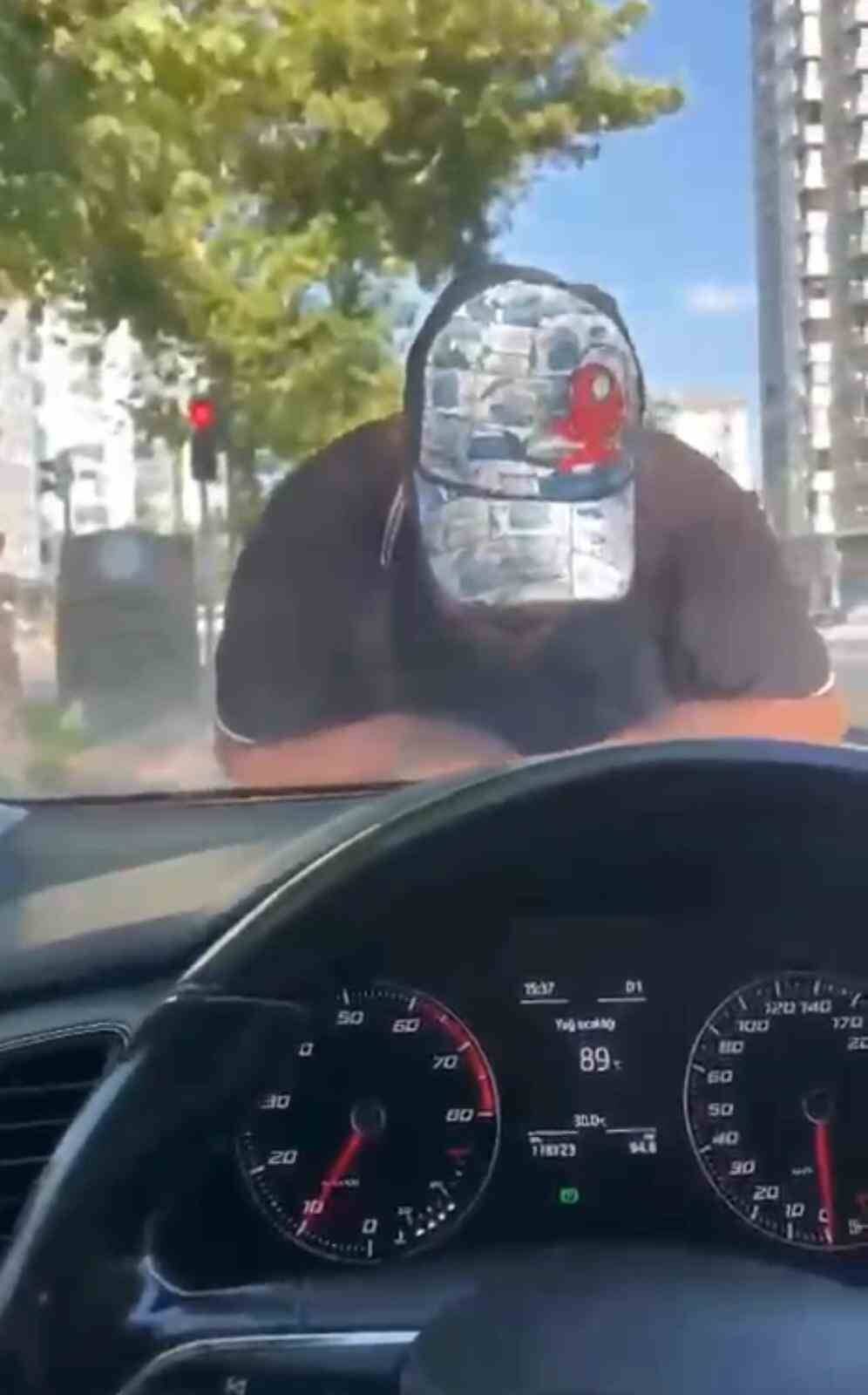 Kayseri’nin Melikgazi ilçesinde ışıkta bekleyerek cam silme bahanesiyle bir aracın kaputuna yatıp zorla para almaya çalışan şahıs, polis ekipleri tarafından yakalandı. Adliyeye sevk edilen şahıs, çıkarıldığı mahkemece tutuklandı.
