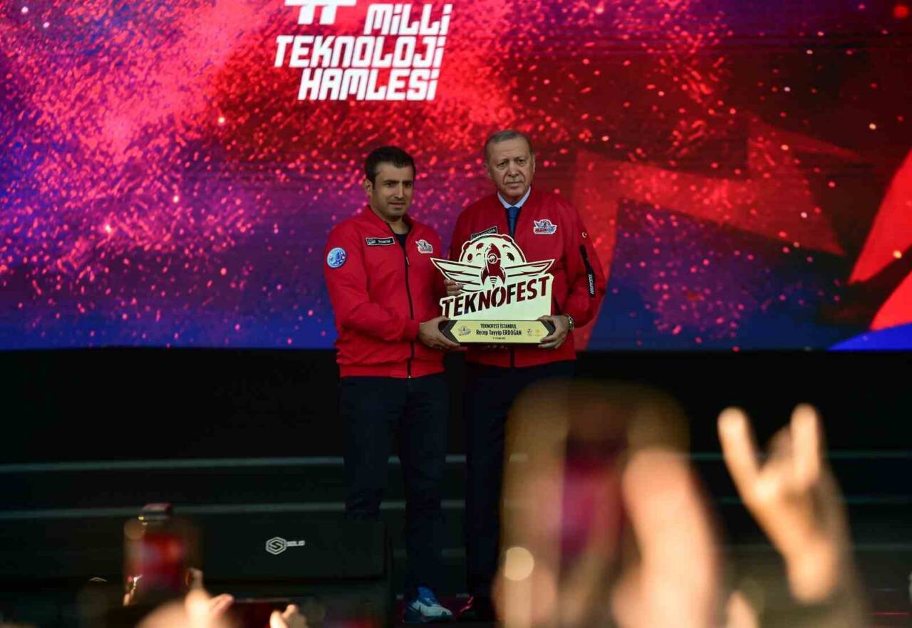 Cumhurbaşkanı Erdoğan, "Bu yıl TEKNOFEST İstanbul’daki 64 farklı yarışmaya 81 ilimizin yanı sıra 96 ülkeden 565 bin takım ve 1 milyon 200 bin yarışmacı katıldı. Şimdi finale kalan 13 bin yarışmacı ile birlikte ödül kazanacak takımlarımızı da şimdiden kutluyor, başarıları inşallah daim olsun diyorum. Tüm yarışma süreçlerini son derece titiz bir şekilde değerlendiren jüri üyelerimize teşekkürlerimi sunuyorum. Küresel bir markaya dönüşen TEKNOFEST bugüne kadar 11 milyon ziyaretçiyi ağırladı. Bu ziyaretçilerin önemli bir kısmı gençlerimizdi. TEKNOFEST’in yine rekorlar kırmaya devam edeceğine inanıyorum. Vakti ve imkanı olan tüm vatandaşlarımızı, gençlerimizi TEKNOFEST 2025’in havasını solumaya bu güzellikleri yerinde görmeye davet ediyorum" diye konuştu.