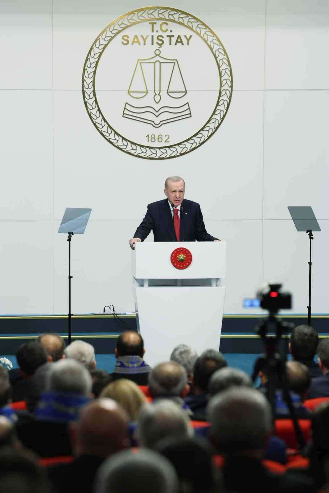 Vatandaşların huzur ve refahını artırmaya odaklanmış bir kamu yönetimi güçlü Türkiye’nin olmazsa olmazı olduğuna dikkat çeken Erdoğan, "Özellikle kamu mali yönetim sistemimizin verimli bir şekilde çalışması Sayıştayımızın denetim faaliyetleriyle doğrudan bağlantılıdır. Bu anlayışla son 23 yılda yaptığımız düzenlemelerle Sayıştay’ın yetki ve denetim alanını daha da genişlettik. 2010 yılında çıkardığımız 6085 sayılı Sayıştay kanunu ile kamu iktisadi teşebbüsleri ve belediye şirketleri de dahil kamu kaynağı kullanan tüm kurumları Sayıştay’ın denetim kapsamına aldık. Bu kanun aynı zamanda hem kamu harcamaları hem de devlet mallarının denetlenmesi ve kayıt altına alınmasında en önemli reformlardan biri oldu" dedi.