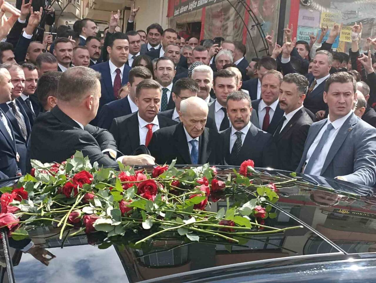 Devlet Bahçeli, Alparslan Türkeş’in mezarını ziyaret ettikten sonra yeni vakfın açılışında partililerle buluştu