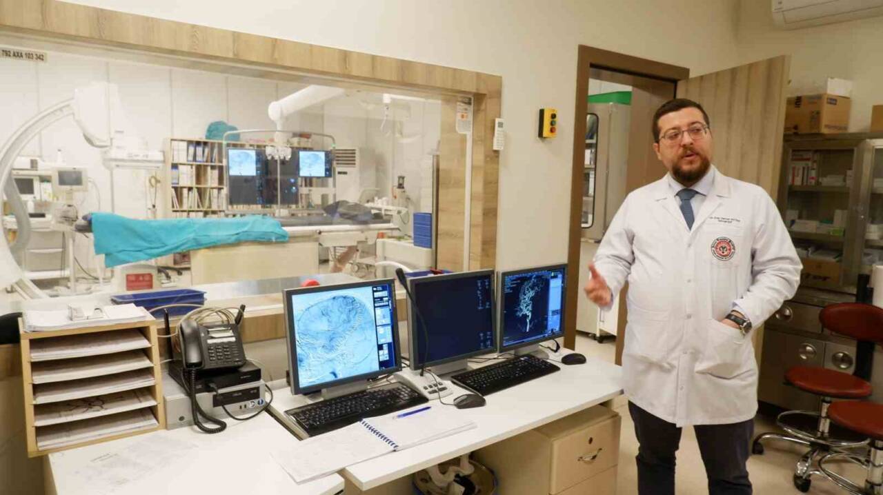 Op. Dr. Eray Serhat Aktan, bundan 3 hafta öncesinde hastada ani şiddetli gelişen baş ağrısı, baş dönmesi ve bulantı şikâyeti ile Ağrı’da yapılan tetkiklerinde beyin kanaması tespit edildiğini ifade ederek, "Aynı merkezde yapılan anjiyografi işleminde hastanın sağ tarafında, beynin sağ tarafında, halk arasında damar yumağı olarak bilinen arteriovenöz malformasyon uyumlu lezyon saplanıyor. Bunun üzerine hastayı tarafımıza kabul ettik, yoğun bakım ünitemize aldık aldık. Hastanemizde 7-24 çalışan bir endovasküler ünitesi ve ameliyathanemiz bulunmakta. Bu ameliyathane ünitemizde hastamızı yoğun bakım aldıktan sonra 1-2 saat içerisinde yaptığımız bütün hazırlıklardan sonra hızlıca operasyonu hazırladık. Yaptığımız tetkiklerde bu damar yumağına yönelik endovasküler tedavinin yani kasıktan yapılacak olan girişimsel tedavinin uygun olmadığını gördük. Ve beyin kanaması olan hastada hızlıca hazırlıklarımızı yapıp ameliyathaneye aldık. Ortalama 4-5 saat süren bir operasyon Erzurum Şehir Hastanesi bir ilk;onla birlikte sağ tarafta kafatasını açıp beynin içerisindeki damar yumağını başarılı bir operasyona çıkarttık. Hastamızın ardından tomografisi çekildi. Beyin damar yumağının tamamen alındığı görüldü. Bundan sonrasında da hastamızı yoğun bakım ünitemize nörolojik olarak iyi bir şekilde aldık. Ortalama 2 hafta kadar yoğun bakım ünitemizde yattı. 1 hafta öncesine kadar servisimize çıkardık. Ve bundan dört gün önce de konsol bir endovasküler yola girerek tanısal bir anjiyografi, beyin anjiyografisi işlemini yaptık. Burada da tamamen o damar yumağının kapandığını gördük. Hastanemiz bünyesinde 7-24 çalışan bu ünitenin sayesinde başarılı olarak beyin kanamalarına ve gerek beyin kanamaları gerek beyin tümörleri olsun bütün tedavileri başarılı olarak uygulayabilmekteyiz" şeklinde konuştu.