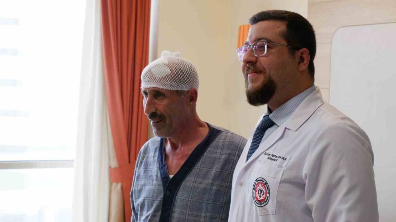 Erzurum Şehir Hastanesi’nde yapılan operasyonla; 59 yaşındaki Memet Dalmaz’ın beyin bölgesinde bulunan damar yumağı, kafatası açılarak yerinden alındı.