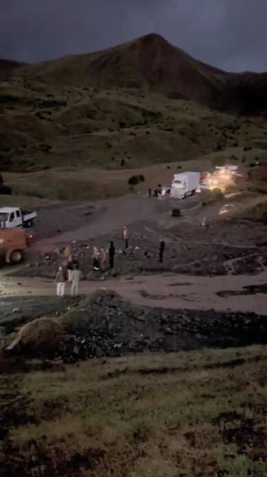 Jandarma ve polis ekiplerinin güvenlik önlemleri aldığı bölgede karayolları ve özel idareye ait iş makinalarıyla kapanan karayolunun açılması için çalışma başlatıldı.