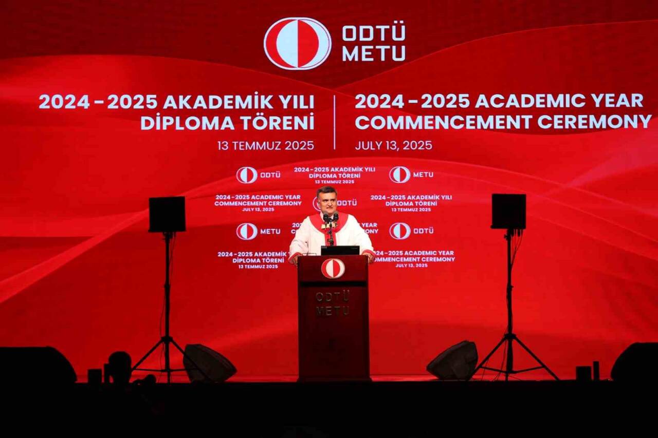 ODTÜ 2024-2025 akademik yılı mezuniyet töreni, üniversite yerleşkesi içindeki Devrim Stadyumu’nda gerçekleştirildi. Mezun öğrencilerin korteji ile başlayan törende renkli görüntüler de yaşandı. Onur Orcan, Çevre Mühendisliği Bölümünden mezun olan kız arkadaşı Ayşe Selim’e evlenme teklif etti. Aldığı evet cevabı ise törene katılarlar tarafından alkışlandı. Ayrıca kortejde, İsrail’in 7 Ekim 2023’ten beri Gazze’ye gerçekleştirdiği saldırıları protesto için Filistin bayrağı da açıldı.