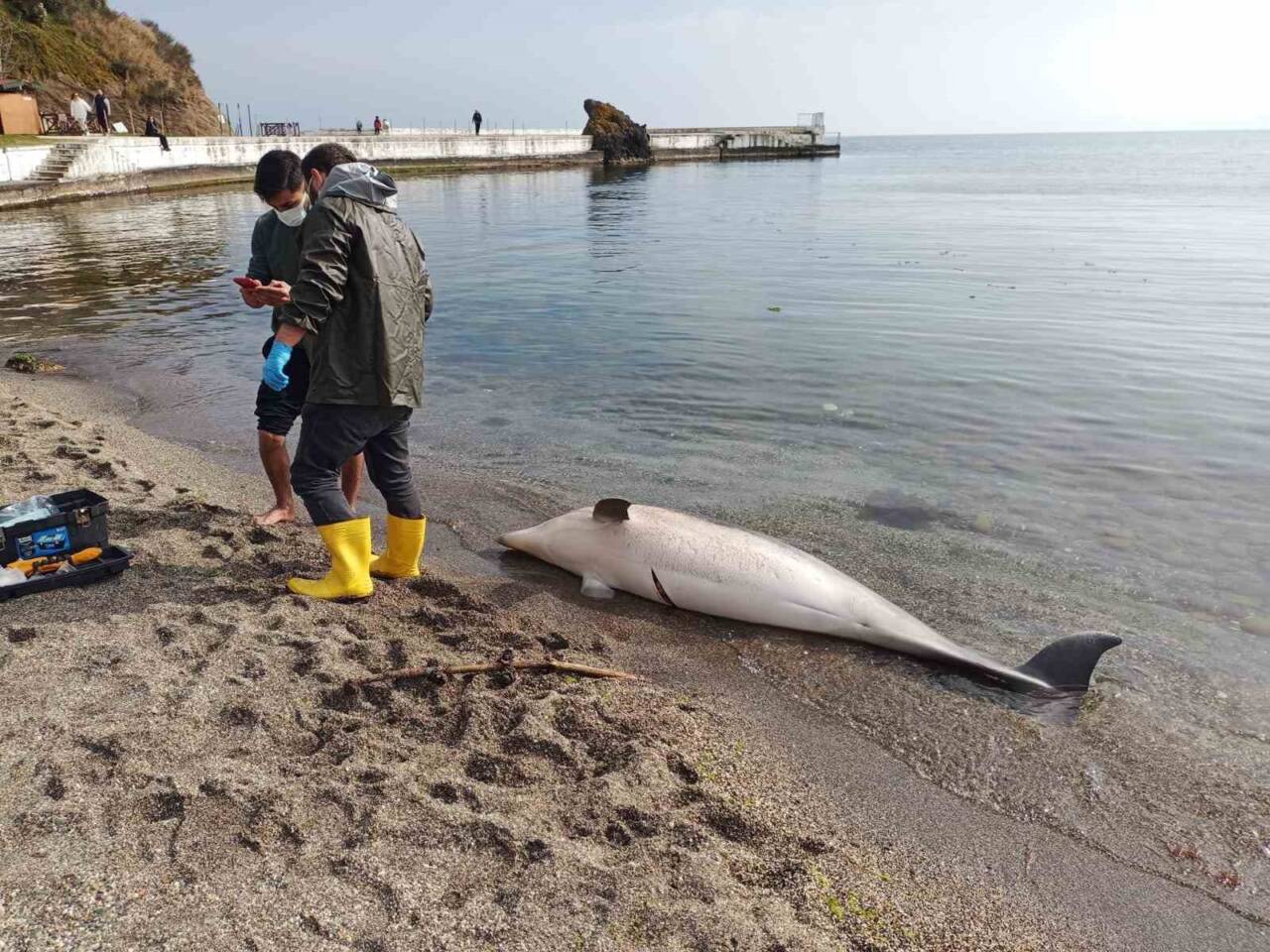 İncelemelerde bulunan Sinop Üniversitesi Su Ürünleri Fakültesi Avlanma ve İşleme Teknolojisi Bölümü Dr. Öğr. Üyesi Uğur Özsandıkçı, "İhbar üzerine geldik buraya. Uzman bir veteriner eşliğinde nekropsi yapma şansımız yok. Dolayısıyla kesin ölüm nedenini söyleyemem. Biz üniversite olarak rutin çalışmalarımız işte popülasyon parametlerinin belirlenmesi için geldik boy ölçümü yaptık. Morfolojik bir inceleme yaptık. Üzerinde kesin ağ izi denilecek bir şeye rastlamadık ama keskin düzenli bir kesik var üzerinde. İlk tahminim sürüklenirken sivri bir kaya parçasının üzerinden de geçmiş olabilir. Bir bıçakla ufak bir kesikte atılmış olabilir şimdilik bir şey söyleyemeyeceğim net bir inceleme yapmadan.2 yada 3 günlük olduğunu düşünüyorum maksimum 5 günlüktür. Sinop’un yerel türlerinden. Üzerinde bay fazla sosyal iletişimi işaret eden çizik ve tırnak izleri var.230 cm genç sayılabilecek bir birey aslında. Genetik için deri örneği aldık. Yaşını belirlemek için diş örneği aldık. Birde bu hayvanlar üzerinde foto kimlikleme çalışmaları var onları görsel yüzgeçlerinden kimlikleyebiliyoruz. O kataloglarda var mı yok mu diye birde dorsal yüzgecinin fotoğrafını çektik. Daha önce bir yerde kimliklendirilmiş bireyse kataloglardan karşılaştırırız diye" diye konuştu.