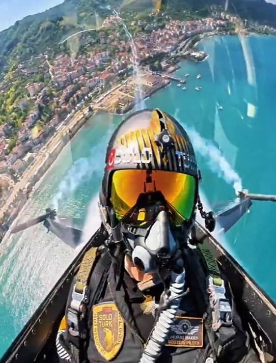 Türk Hava Kuvvetlerinin akrobasi timi SOLOTÜRK’ün, "Mayıs Yedisi" etkinlikleri kapsamında Ordu’nun Perşembe ilçesinde gerçekleştirdiği gösteri uçuşunun uçak içinden görüntüleri paylaşıldı.
