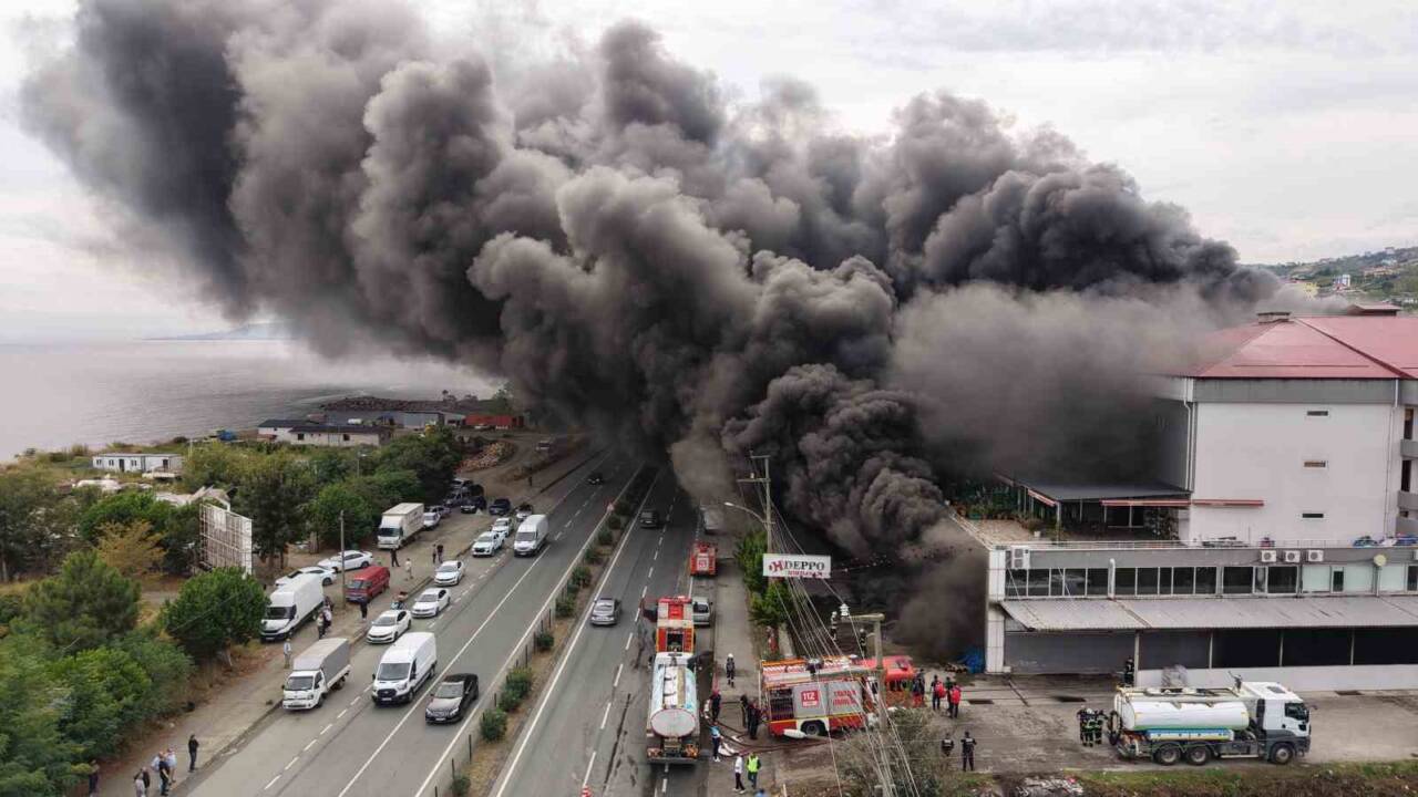 Trabzon’un Akçaabat ilçesinin Darıca mahallesinde Deppo’ isimli alışveriş merkezinde yangın çıktı. Yoğun duman kütlesinin oluştuğu yangın nedeniyle Karadeniz Sahil Yolu’nda ulaşım tek şeritten kontrollü olarak veriliyor.