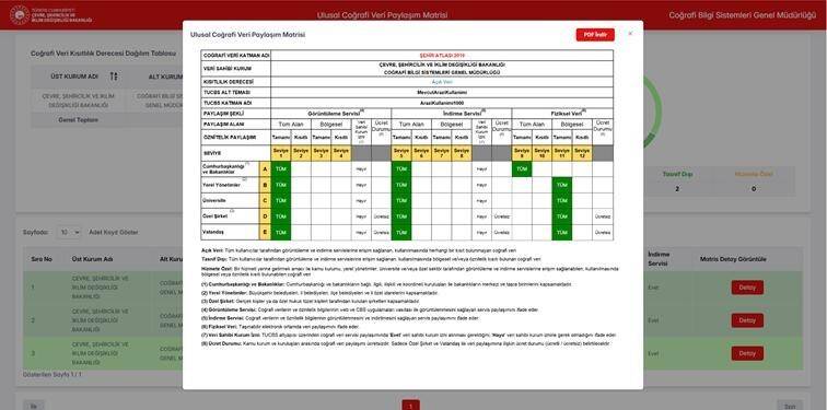 Coğrafi veri paylaşım matrisleri, veri sahibi kurum tarafından oluşturularak Ulusal Coğrafi Bilgi Platformu’nu kullanan kullanıcıların yetki düzeyine göre erişime açılıyor. Kimin hangi veriye ulaşabileceğini veri sahibi kurum belirleyip denetliyor. Böylece stratejik verilerin güvenliği sağlanıyor.