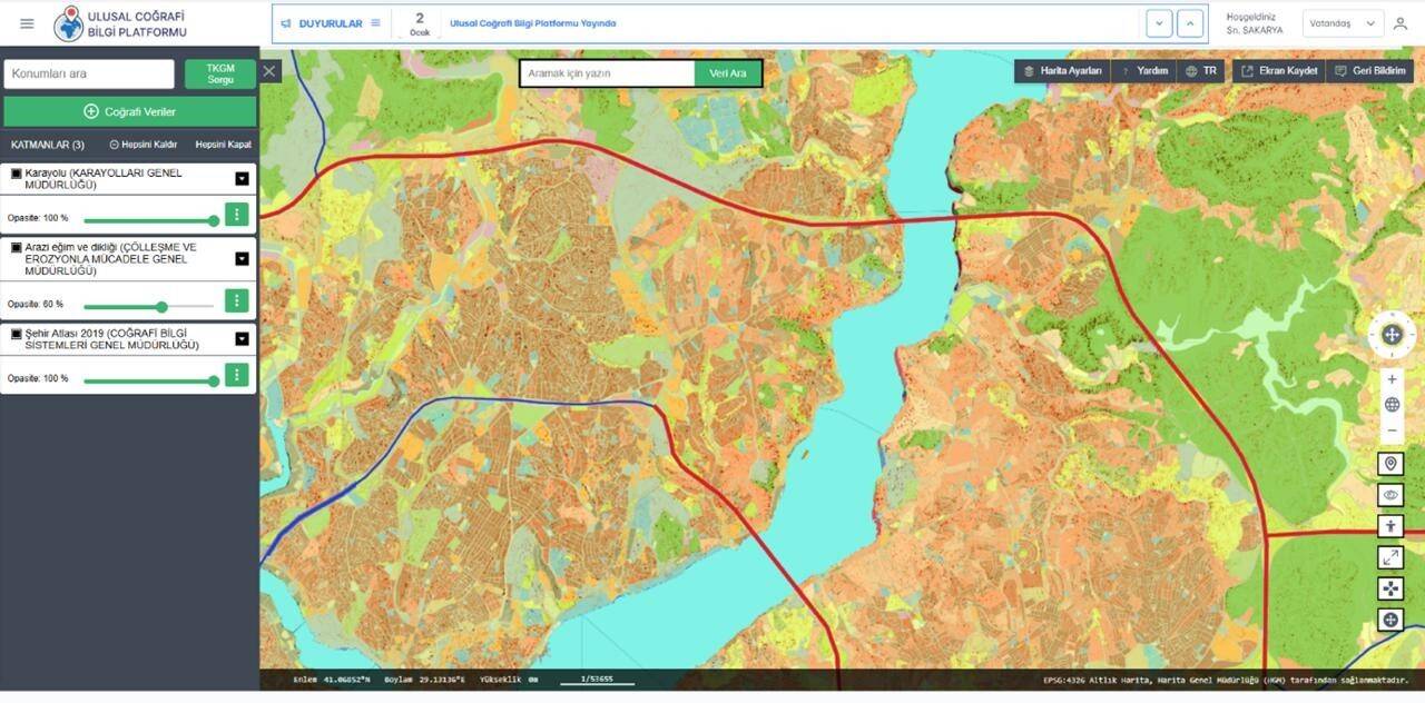Çevre, Şehircilik ve İklim Değişikliği Bakanlığı, e-Devlet’e entegre edilen Türkiye Ulusal Coğrafi Bilgi Platformu’nu kamu kurumlarının ardından vatandaşların da kullanımına açtı.