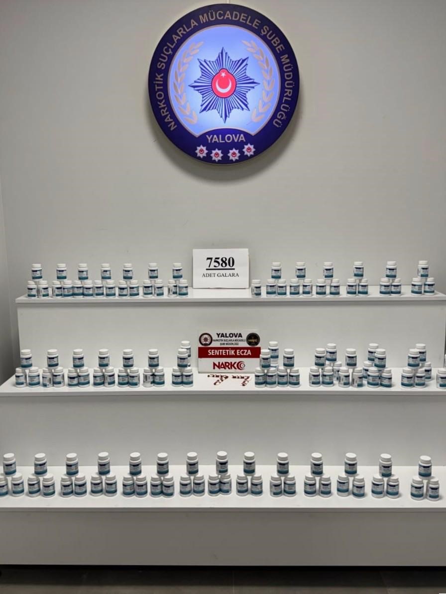 Alınan bilgiye göre, Yalova Emniyeti Narkotik Suçlarla Mücadele Şube Müdürlüğü ekipleri, 15-22 Aralık tarihleri arasında düzenlediği operasyonlarda, 7 şüpheliyi gözaltına aldı. Zanlıların ikamet ve araçlarında yapılan aramalarda 7 bin 580 sentetik hap, 36,52 gram sentetik kimyasal sıvı, 25,72 gram kimyasal madde, 12,63 gram kokain, 1,05 gram esrar, 2 tabanca ve 48 tabanca mermisi ele geçirdi. Emniyetteki işlemlerinin ardından adliyeye sevk edilen zanlılardan 6’sı çıkarıldıkları mahkemece tutuklanarak cezaevine gönderildi.